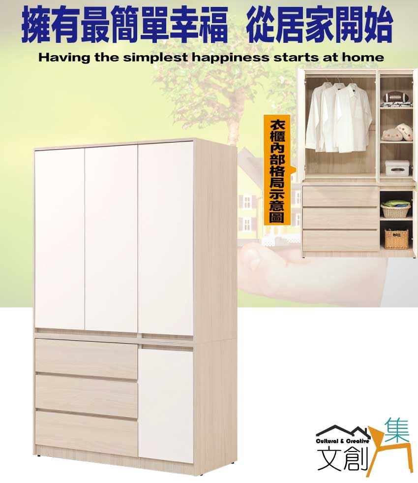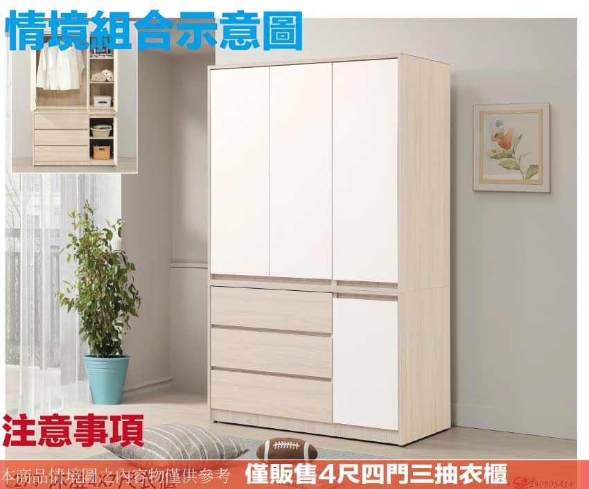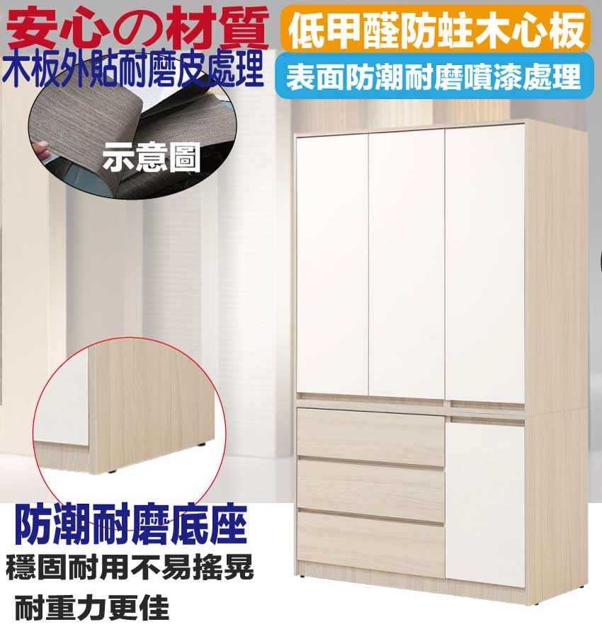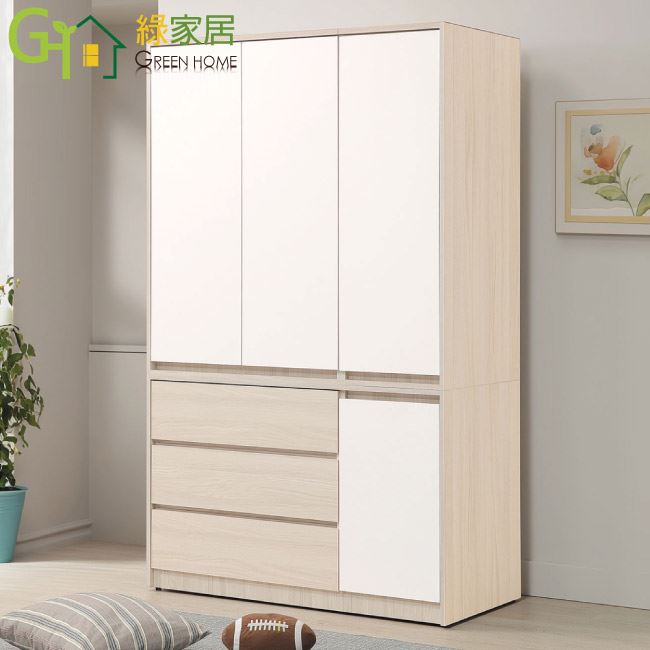 【綠家居】山多利雙色4尺四門三抽衣櫃