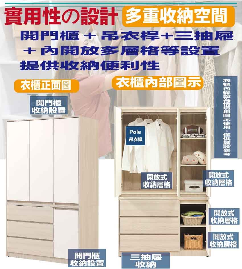 開門櫃+吊衣桿+三抽屜