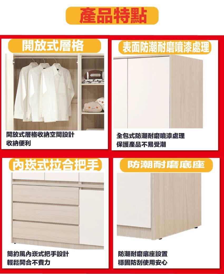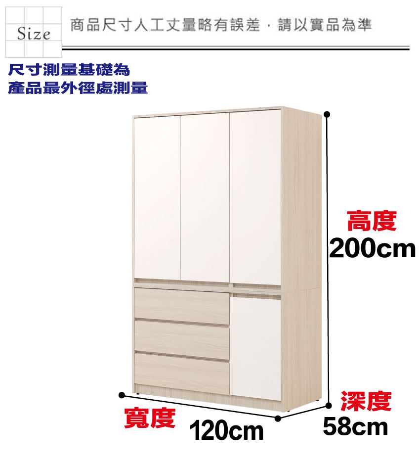 - ◆產品名稱:【綠家居】山多利雙色4尺四門三抽衣櫃