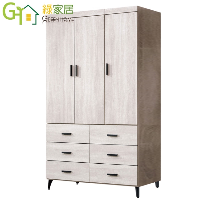 【綠家居】艾曼淺橡4尺三門六抽衣櫃