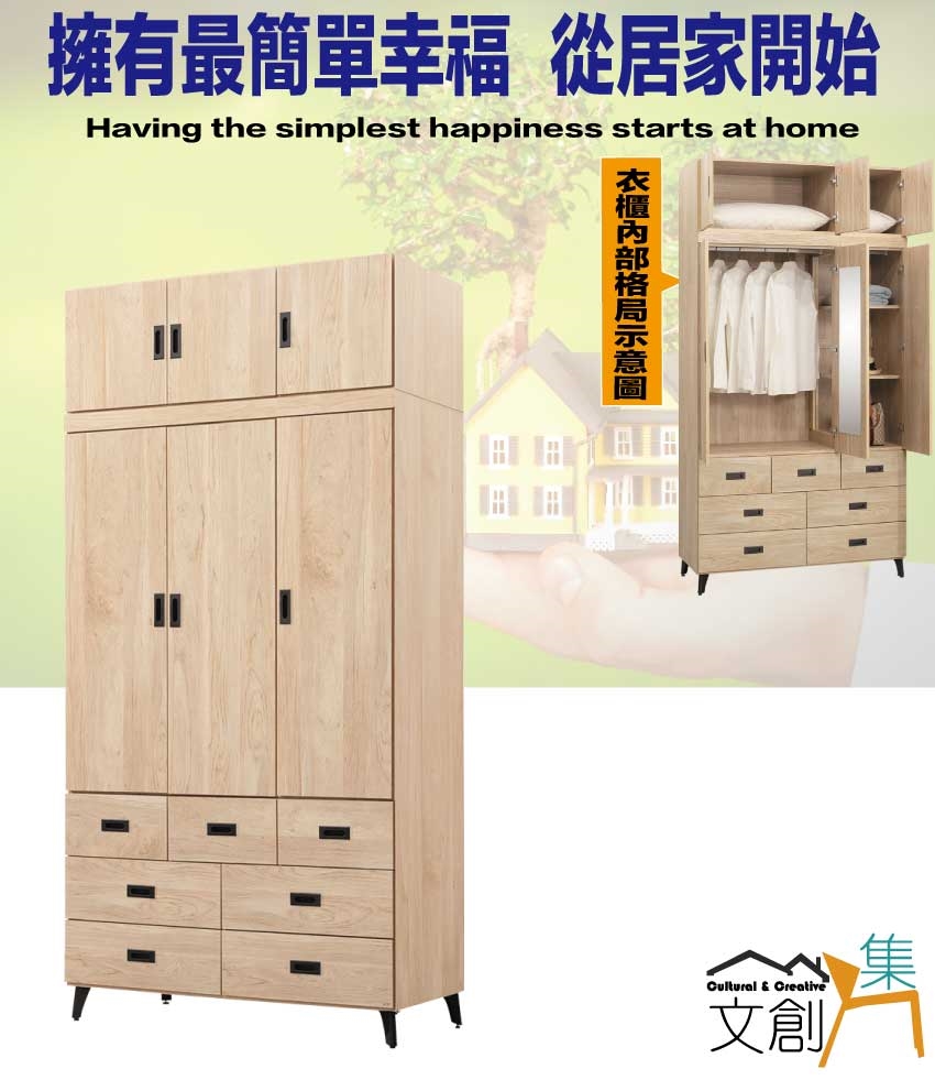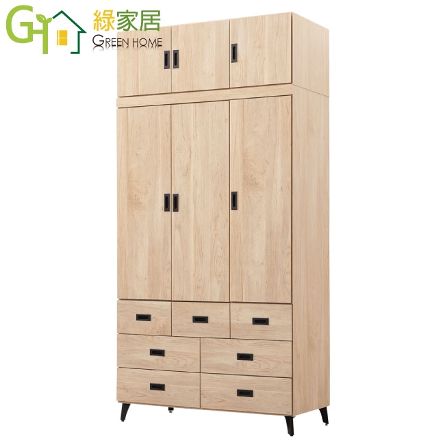 【綠家居】瑪卡利4尺六門七抽加高衣櫃組合