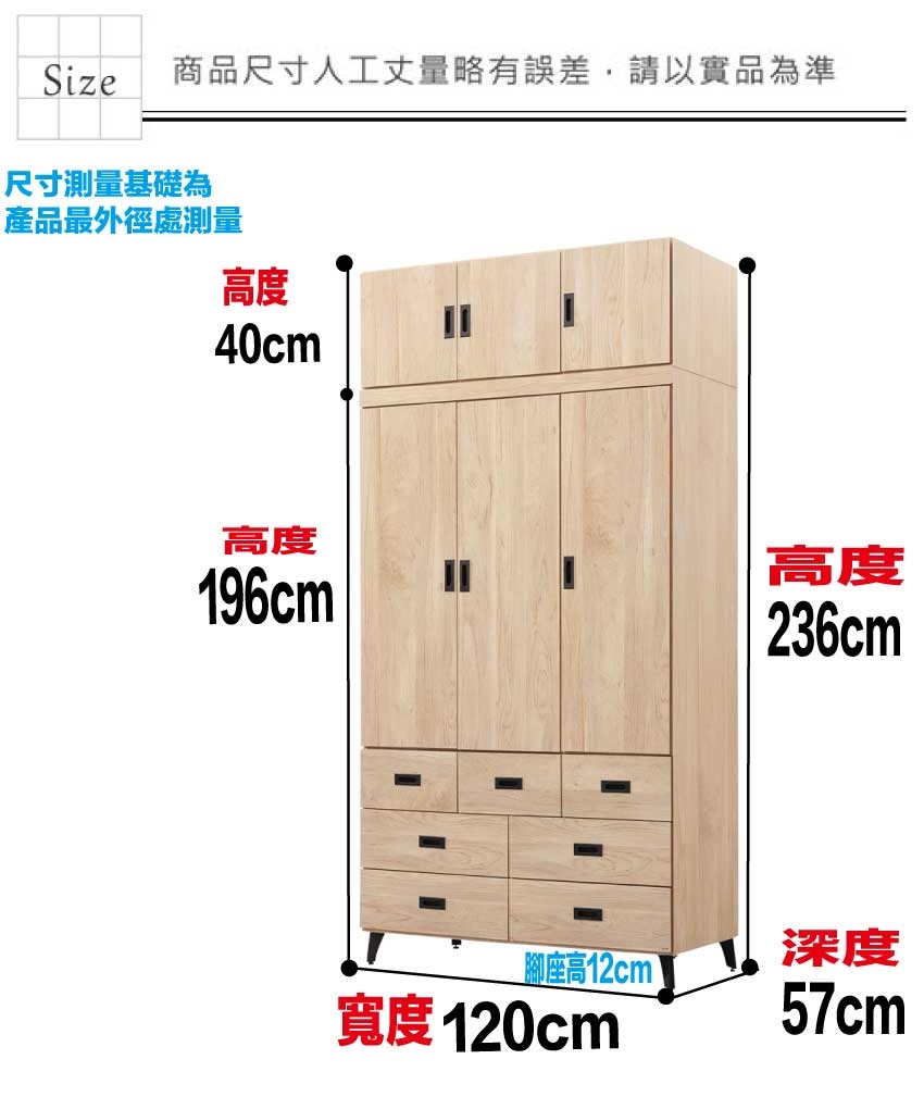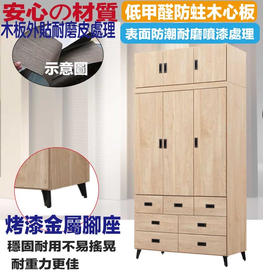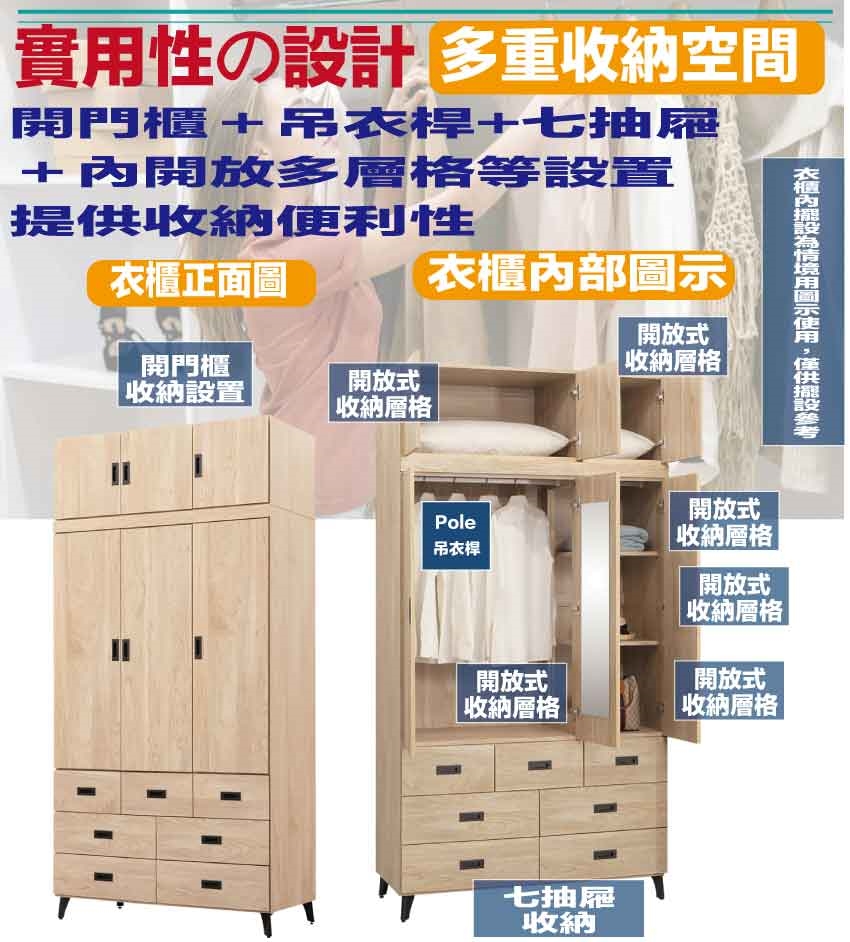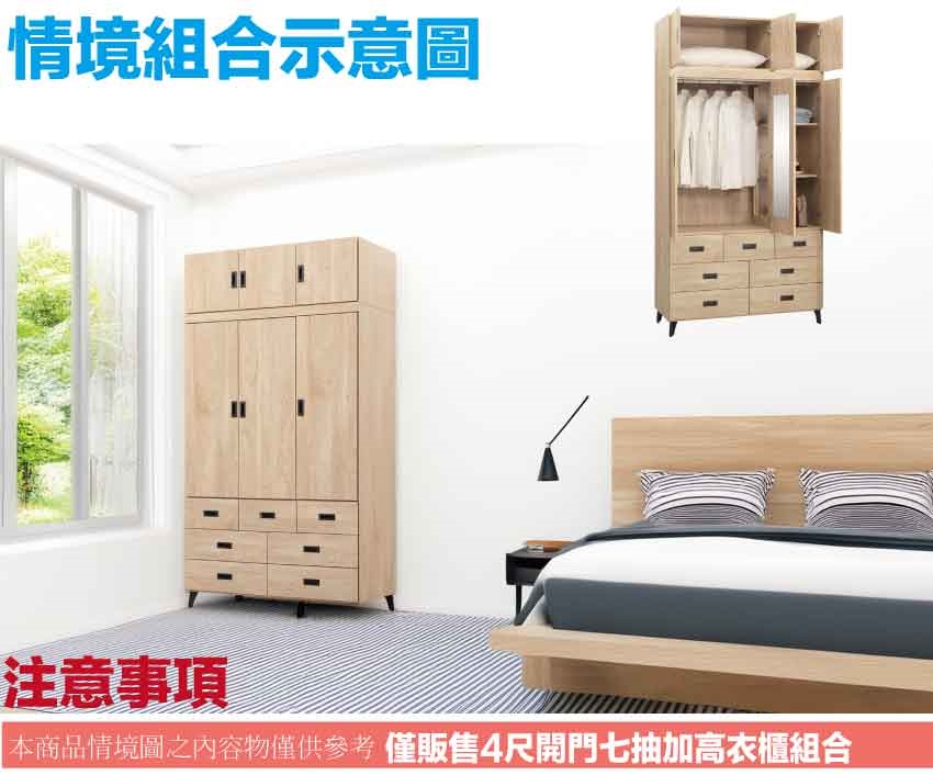 - ◆產品名稱:【綠家居】瑪卡利4尺六門七抽加高衣櫃組合