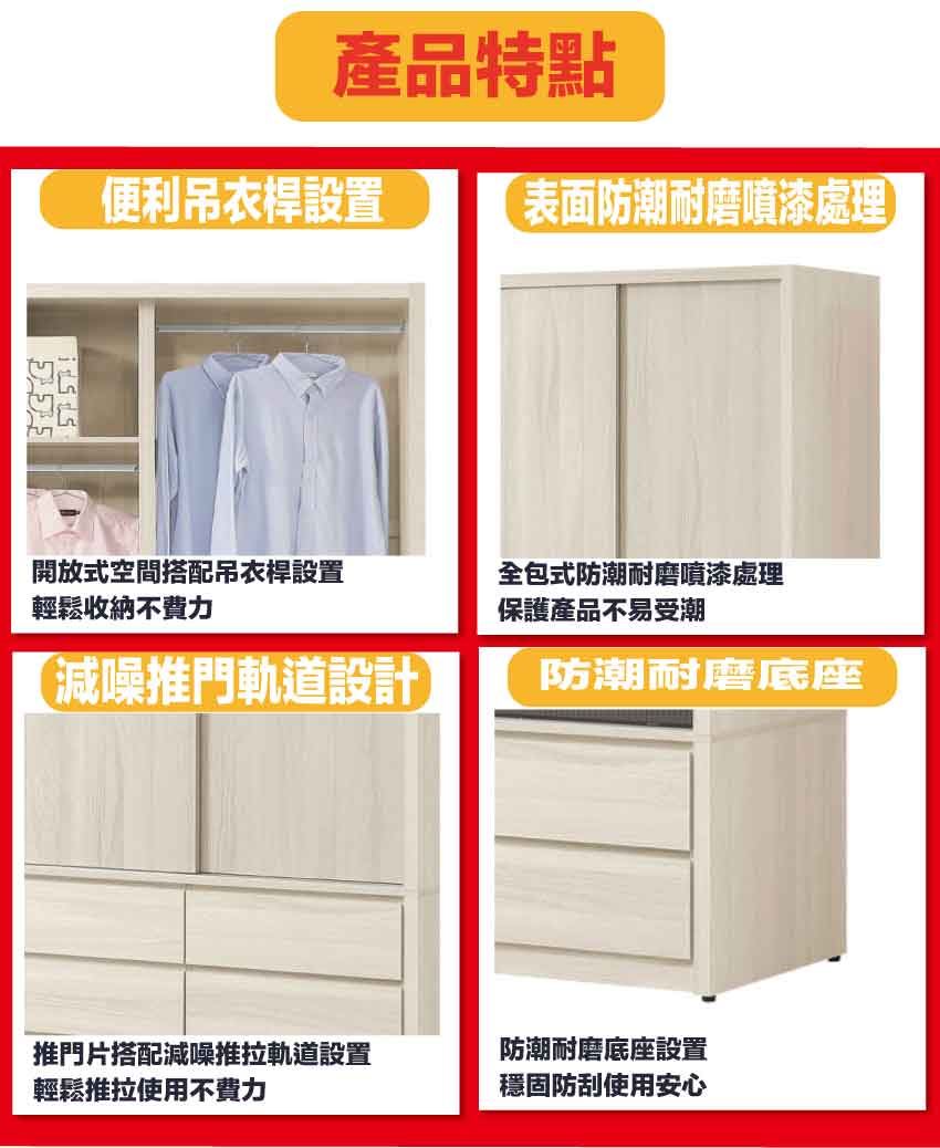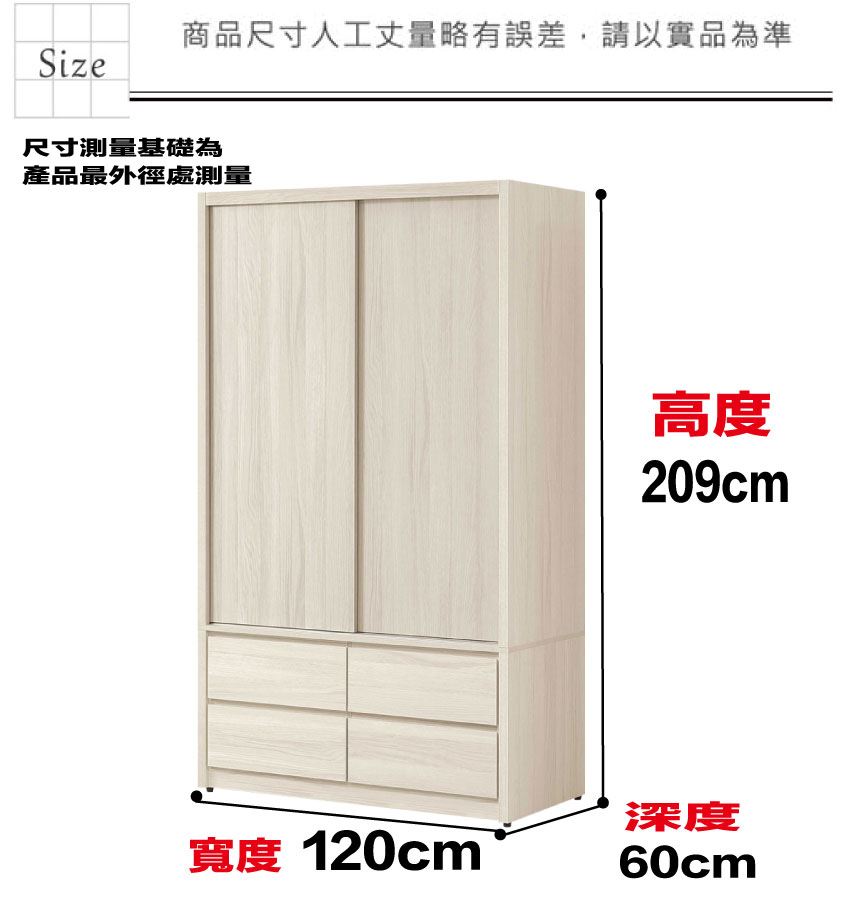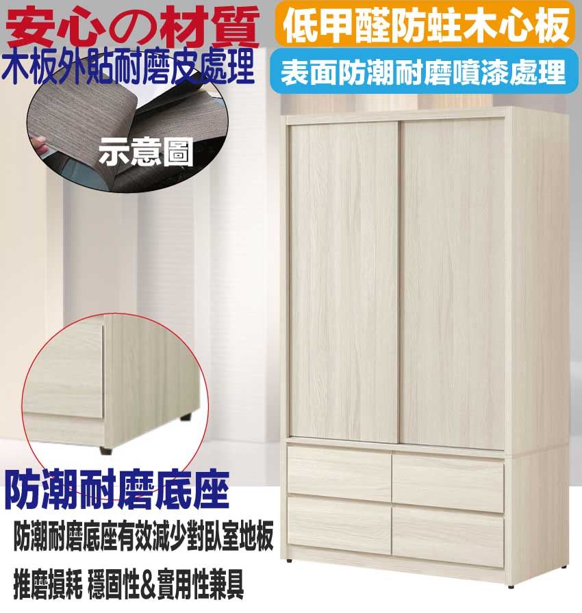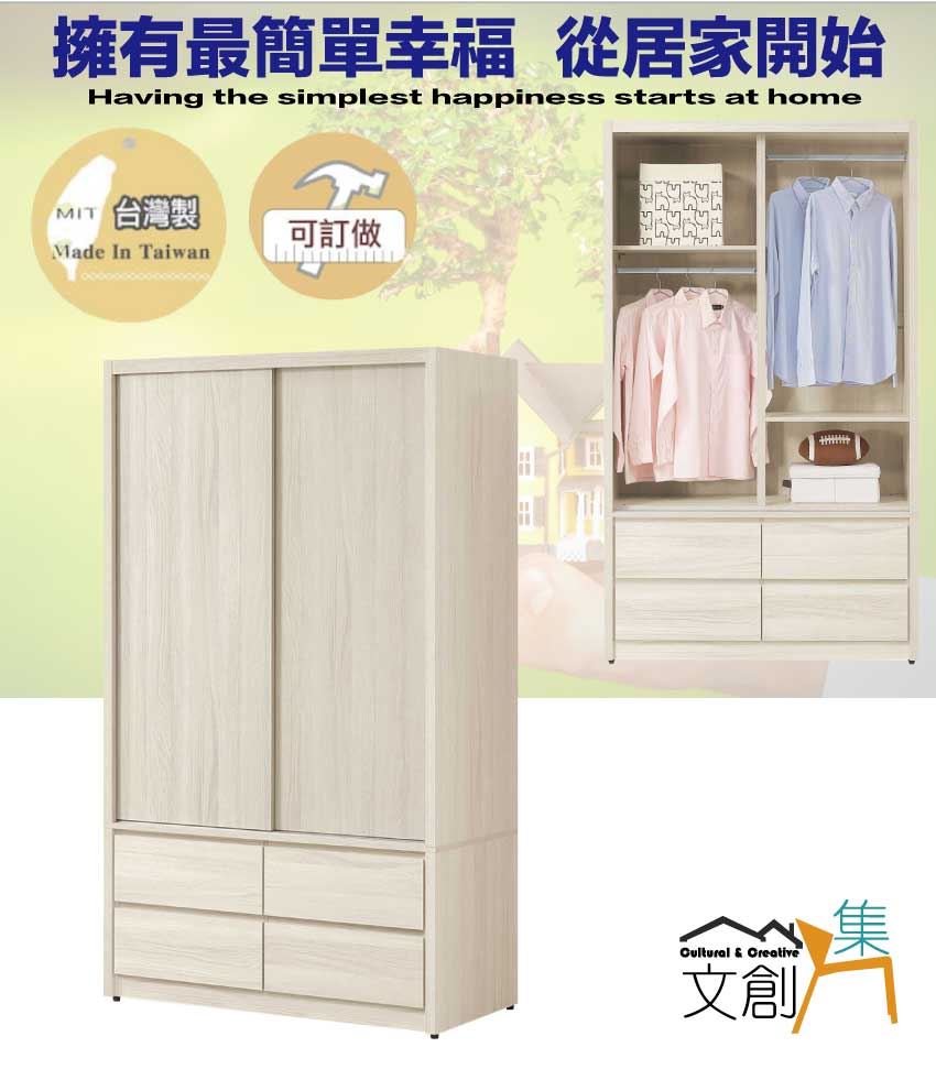 - ◆產品名稱:【綠家居】奧斯巴4尺推門四抽高衣櫃