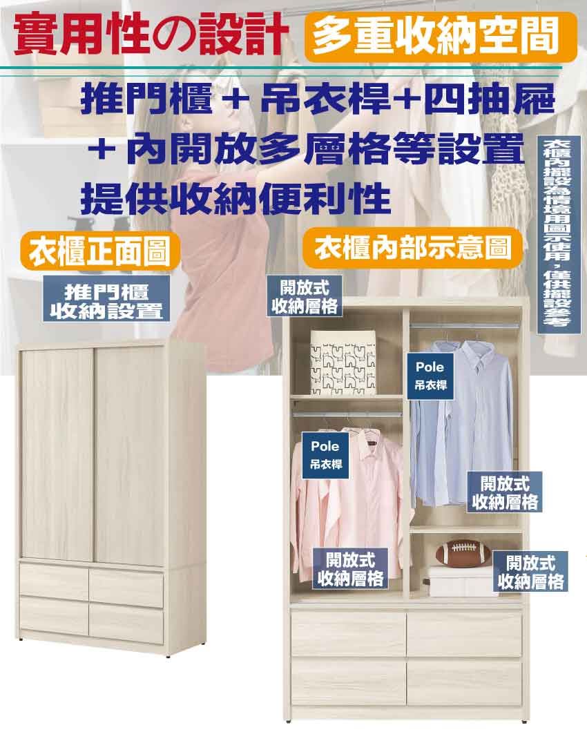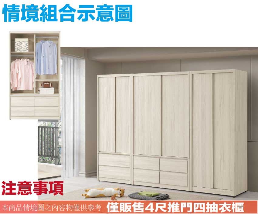 【綠家居】奧斯巴4尺推門四抽高衣櫃