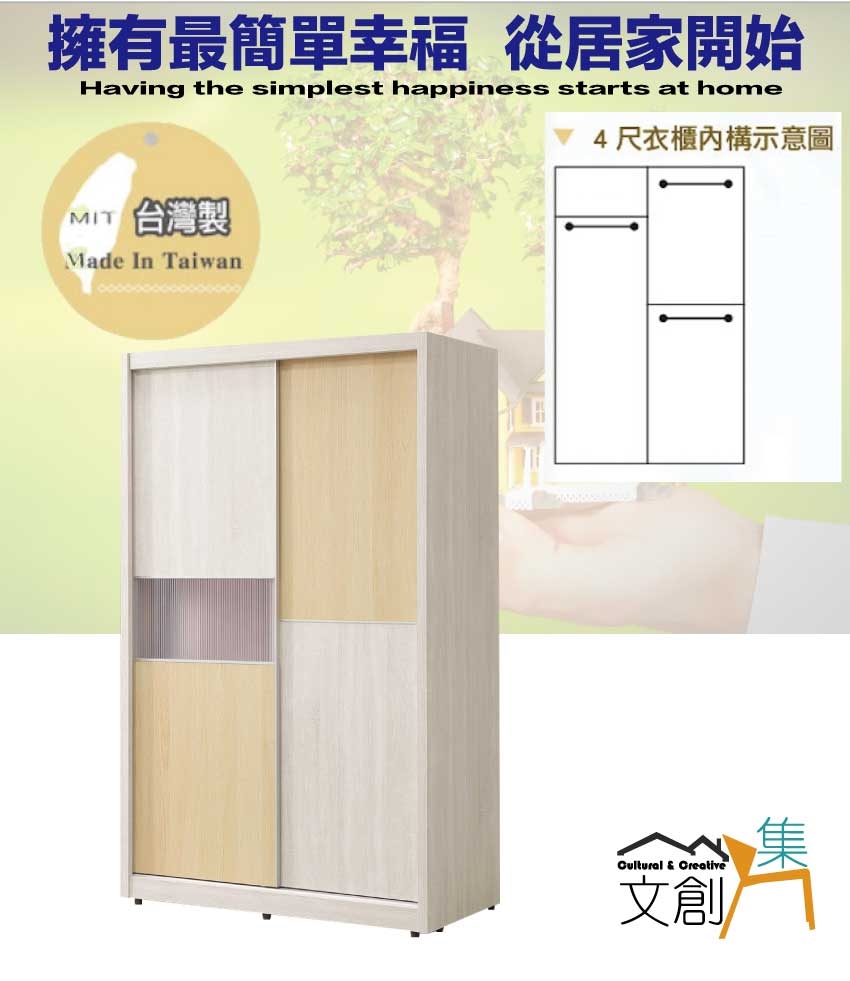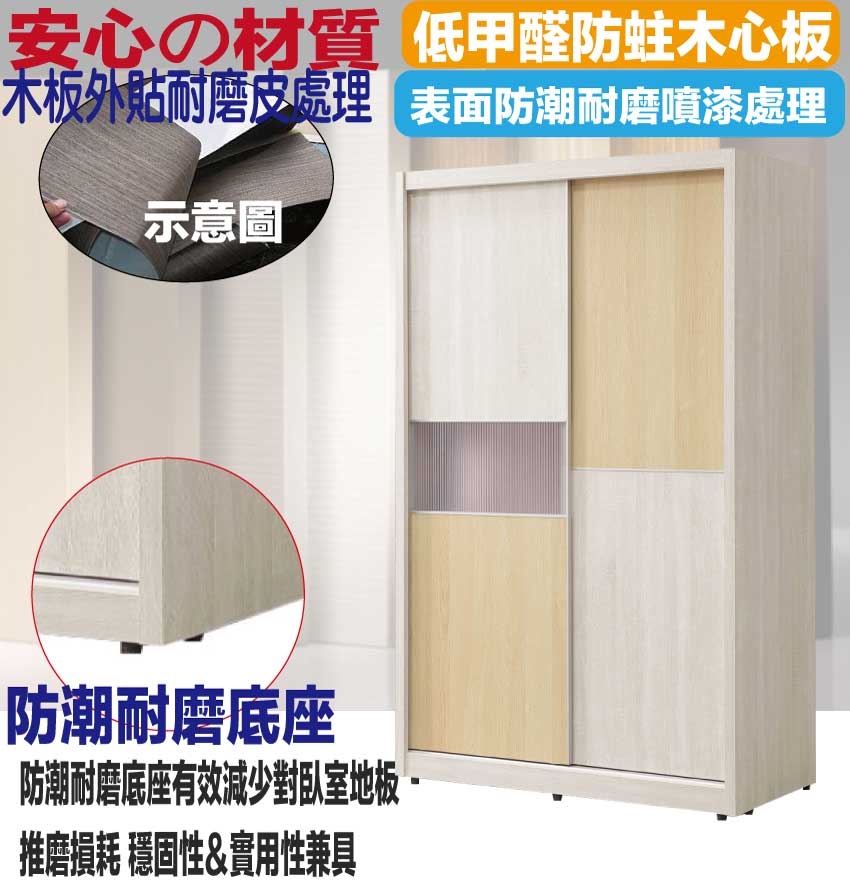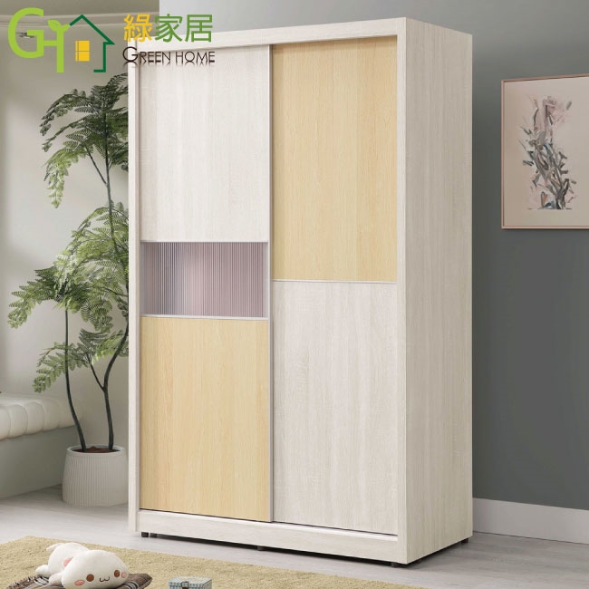 【綠家居】菲可雙色4尺推門玻璃衣櫃