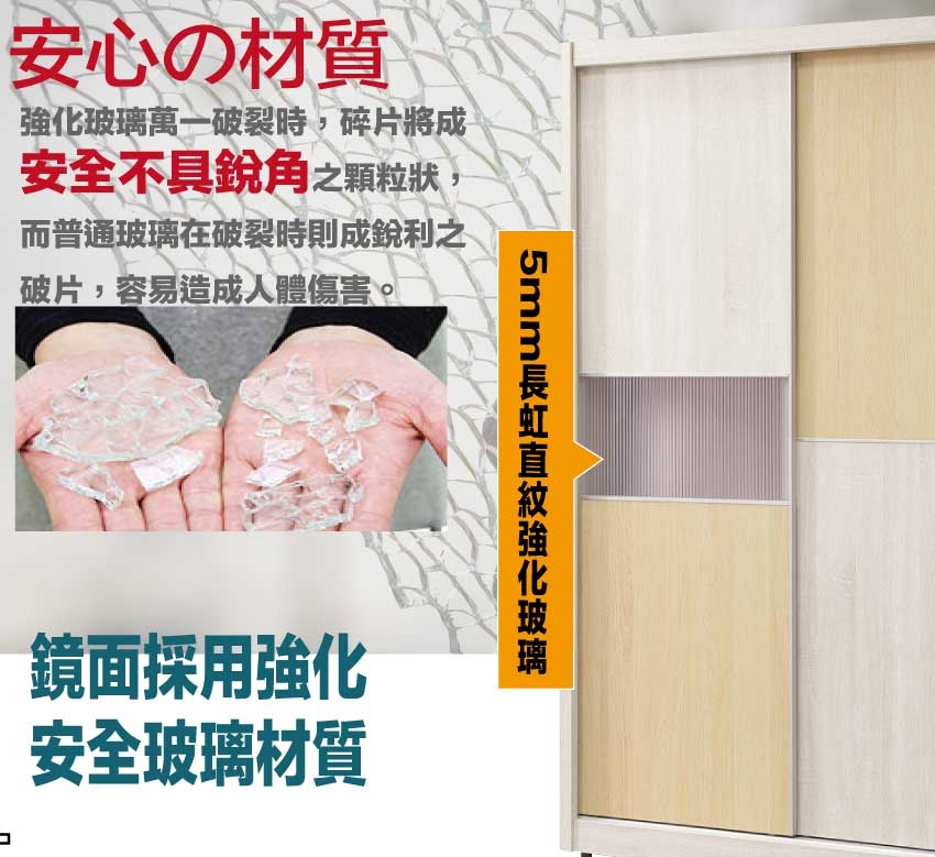 採用防蛀木心板+防潮耐磨底座+五金滑軌結構+強化玻璃門片等安心材質製造