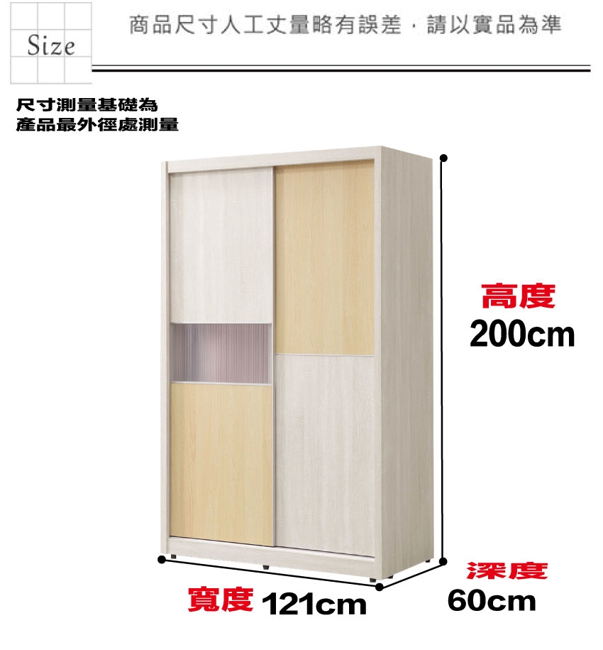 尺寸:(寬)121x(深)60x(高)200/公分 ◆材質: 材質:防蛀木心板+防潮耐磨腳座+五金滑軌結構+強化玻璃門片 噴漆:防潮耐磨噴漆處理 ◎注意事項: 1.接單後,會有專員與您電聯確認送貨時間。 2.需以吊車吊運以當地吊車行情計,費用由消費者支付。 3.備註:本商品不含圖片上、家飾...等,情境圖之內容僅供參考。 4.請於配送人員到場時,檢查商品有無缺失,以免造成爭議。 5.允許的誤差尺寸範圍+-2%。 6.因拍攝燈光與電腦解析度瑩幕不同可能會造成實品與網頁上商品有些許色差,商品以收到實品為主。 ◎收貨與退貨: 1.實因特殊地型限制及(山區、濱海鄉、鎮、村、區)無法送貨時,本公司保有出貨與否之權利(下單後會由專人告知是否可配送)。 2.有電梯不收取費用! 無電梯樓層超過4樓以上(包含4樓)一樓層費用200元,現場支付給服務員。 3.超過鑑賞期,恕不接受退貨。 4.限非人為因素破壞毀損,才可退貨。 5.若退貨時,收件時間請與廠商協調,確保自己權益。 6.退貨時應保留贈品及附件完整(如有遺失部分,需酌收費用)。 ◎備註: .無回收服務。 .收貨與退貨:實因特殊地型限制及(山區、濱海鄉、鎮、村、區)無法送貨時,本公司保有出貨與否之權利(下單後會由專人告知是否可配送)。 .花蓮(縣市)、台東(縣市)、屏東(縣市場及其它縣市屬於山區、濱海鄉、鎮、村地區無配送服務,如您有需求,則需另外收取運費。(您可直接訂購,後續由廠商報價。) ※由於加價配送服務為一次消耗性商品,若有退換貨等情形加購之運費恕無法退還 ※運費報價皆為單趟計算。 ※使用加價配送地區,收貨時間會比一般地區再增加10個工作天。