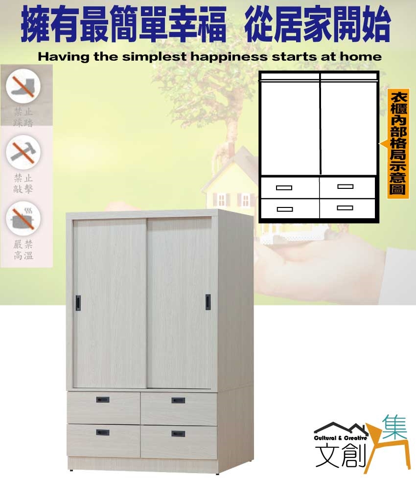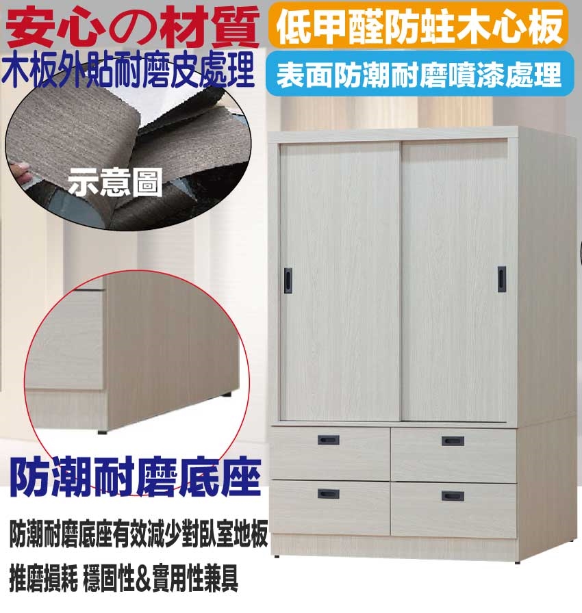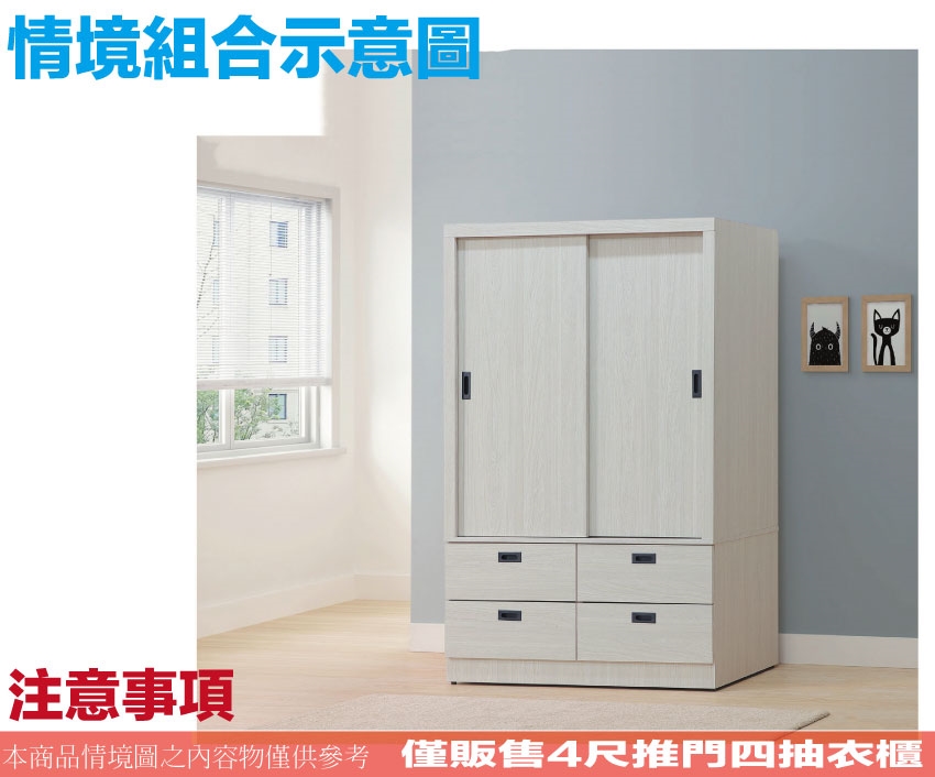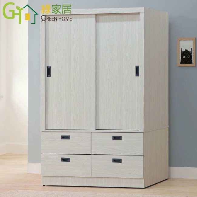 【綠家居】福登4尺推門四抽衣櫃