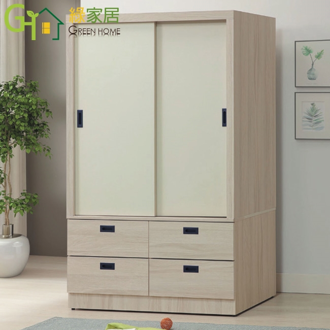 【綠家居】艾悠4尺推門四抽衣櫃