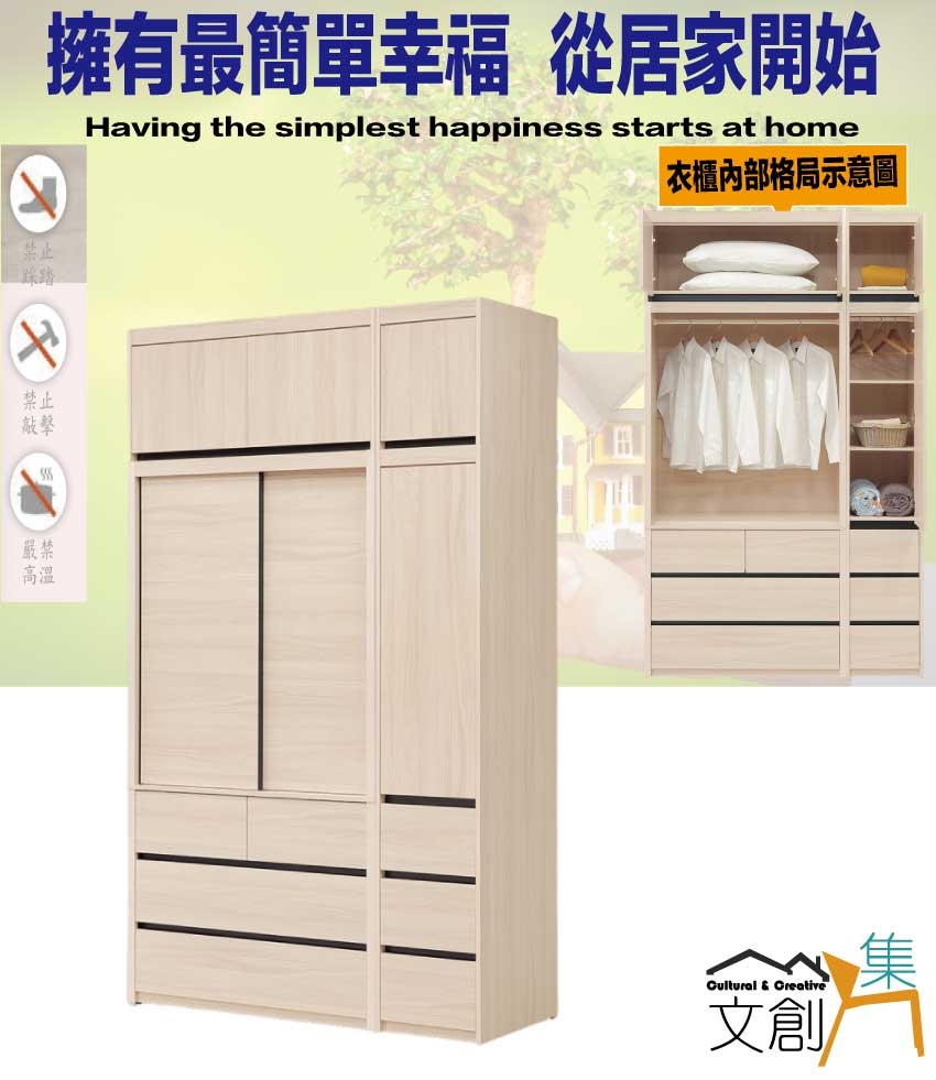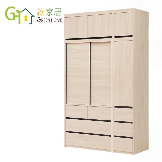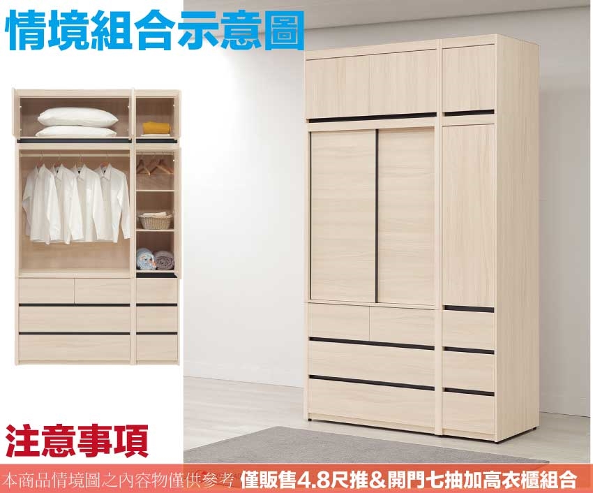 【綠家居】波可4.8尺開&推門七抽加高衣櫃組合