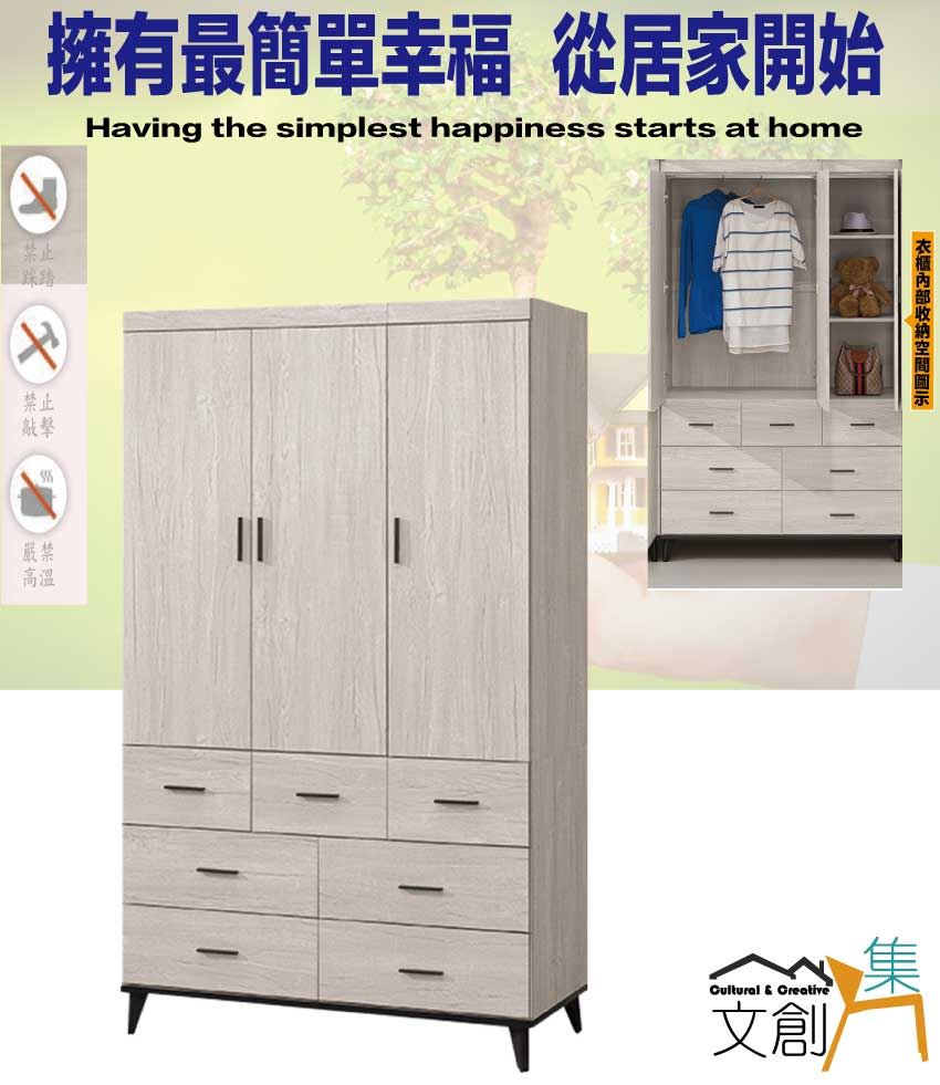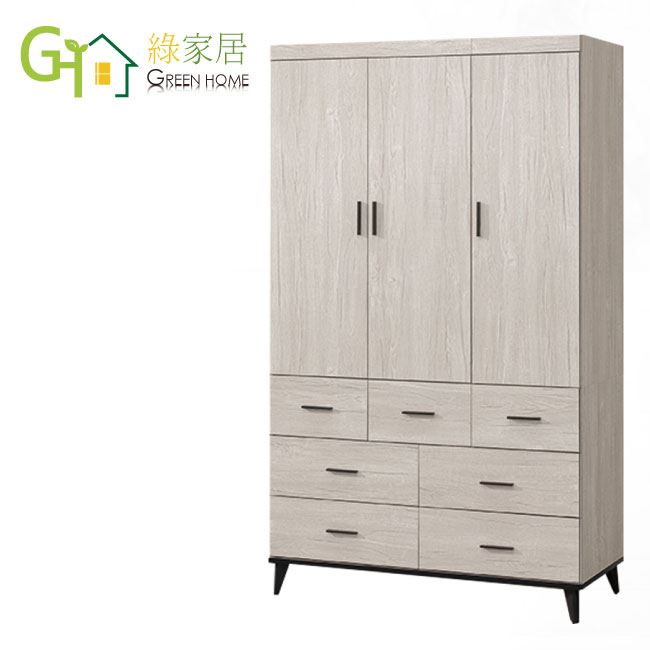 【綠家居】凱曼4尺三門七抽衣櫃