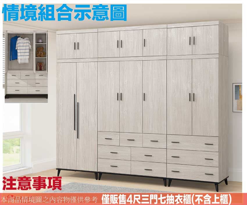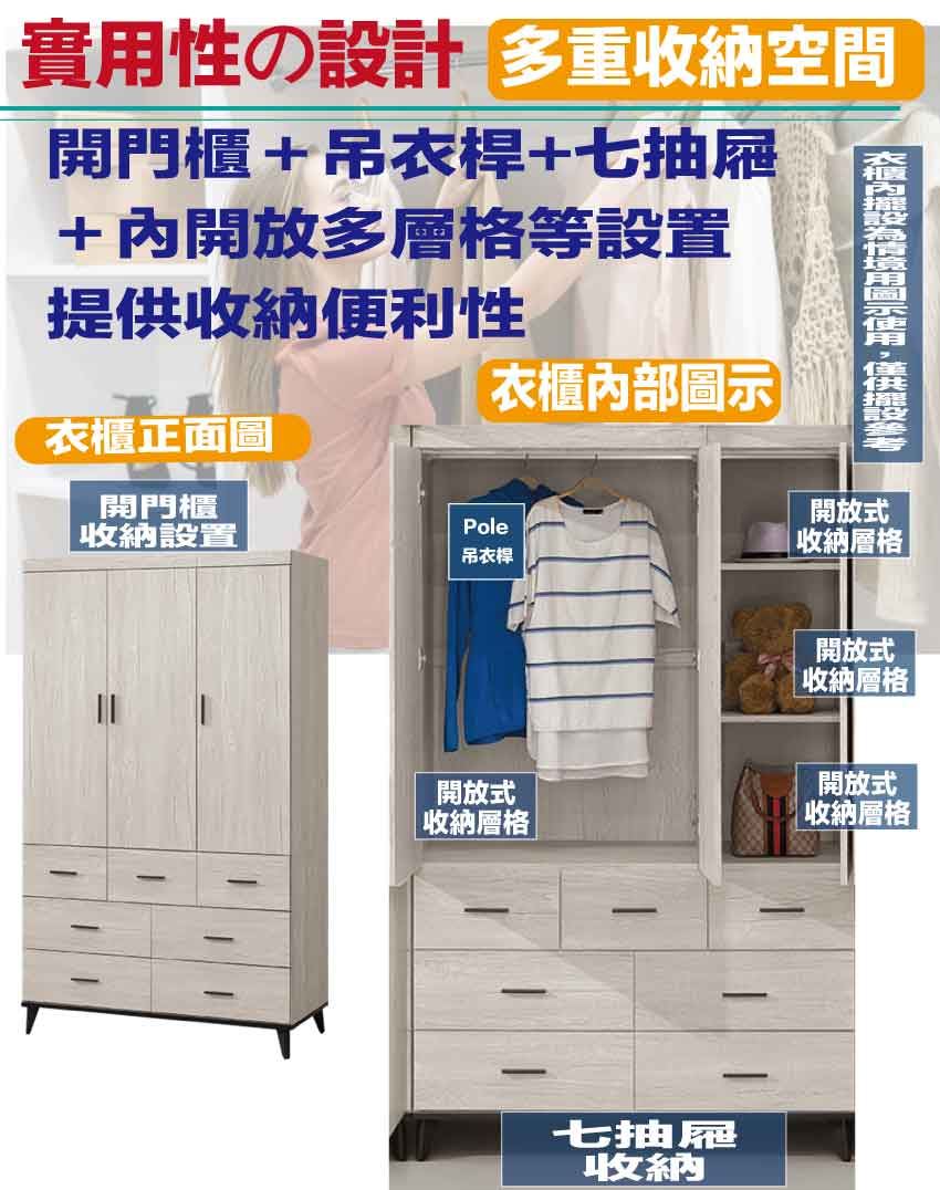 - 產品名稱:【綠家居】凱曼4尺三門七抽衣櫃