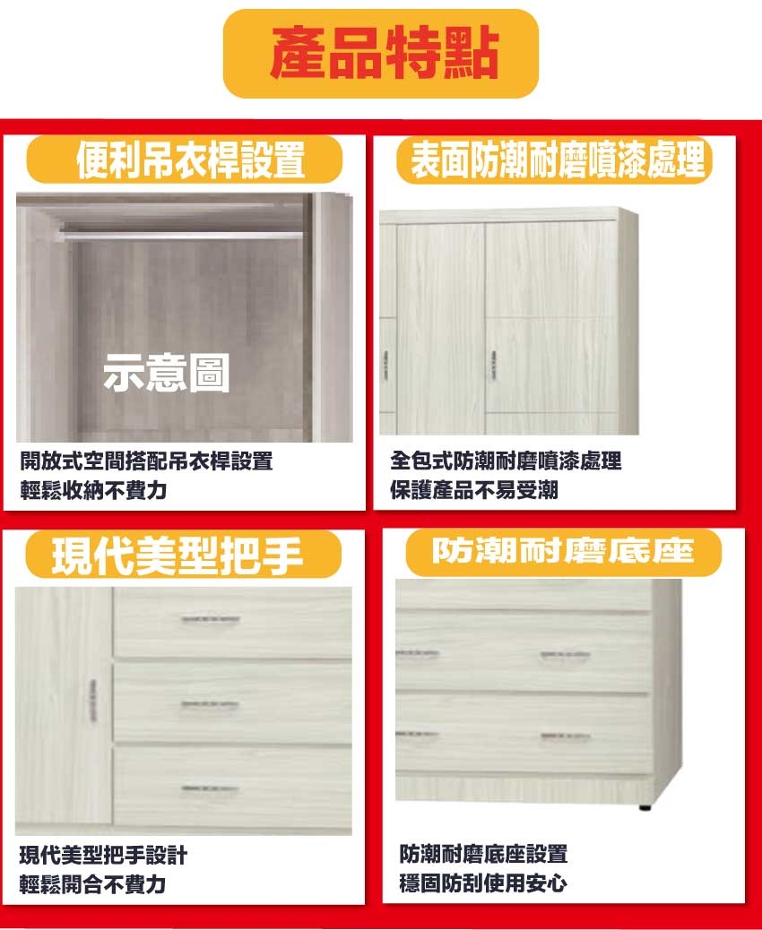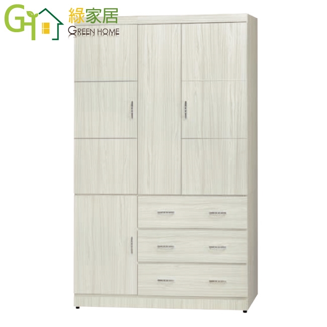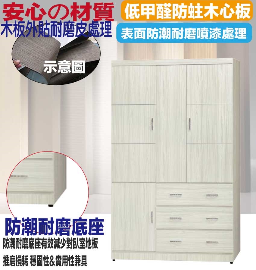 ★偏遠地區需額外加收運費,下標請先問與答詢問★ ★下訂前注意 由於商品流動較快,下訂前請先詢問是否有貨在下訂喔~★ 【綠家居】克爾4尺開門三抽衣櫃 雪杉木紋色系+安心材質製造,使用放心+搭配居家更便利,採用防蛀木心板+防潮耐磨底座+五金滑軌結構等安心材質製造 ,外層採用防潮耐磨噴漆處理搭配採用開門櫃+吊衣桿+三抽屜+內開放層格等收納空間設計,全由專人配送到家,專業安心服務,替你省下更多時間!