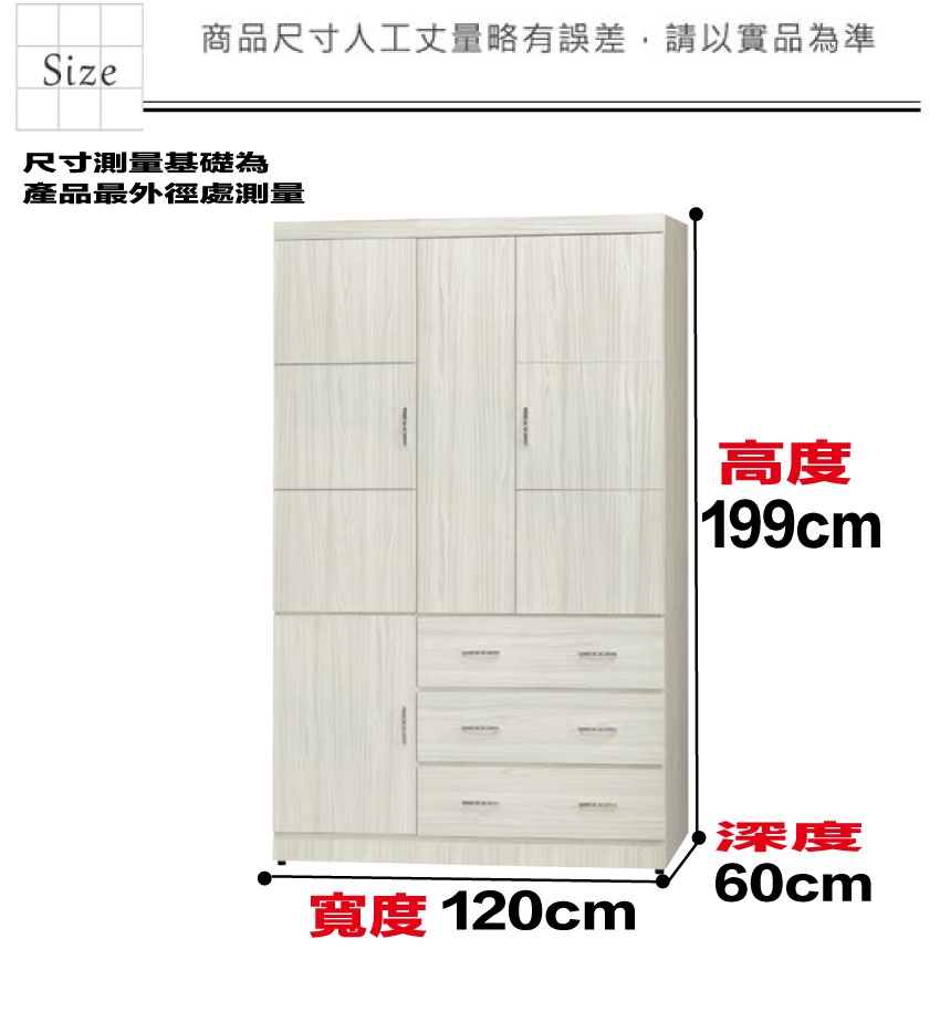 產品名稱:【綠家居】克爾4尺開門三抽衣櫃 - 尺寸:(寬)120x(深)60x(高)199/公分