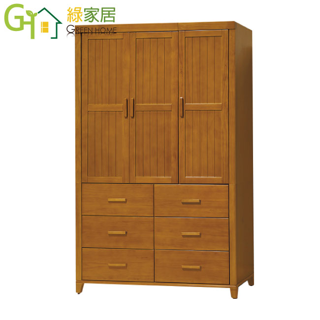 【綠家居】夏舒 時尚4尺實木六抽衣櫃/收納櫃(吊衣桿+六抽屜)