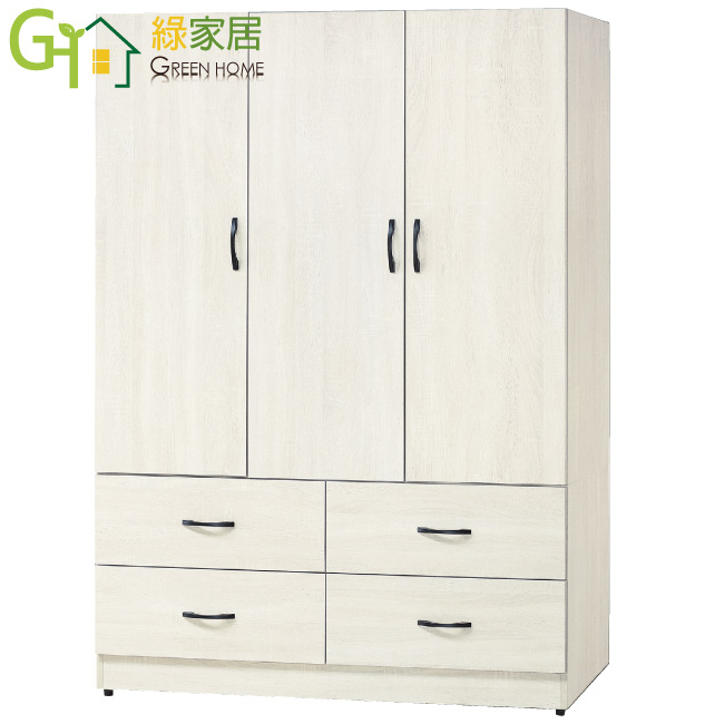 【綠家居】 泰格 時尚4尺木紋三門衣櫃 ( 三色可選+四抽屜+吊衣桿 )