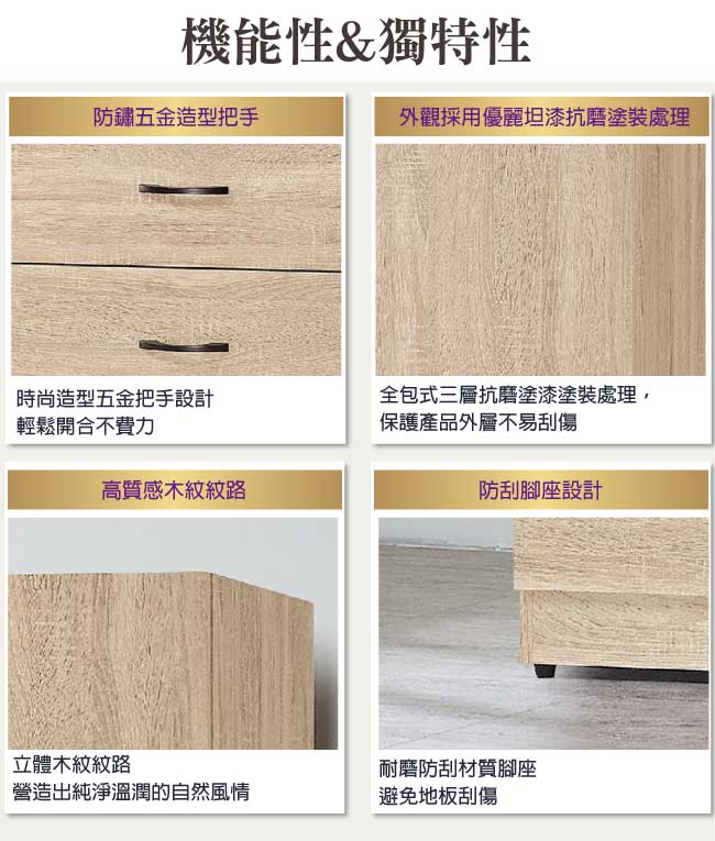 防蛀木心板+鋼珠滑軌結構等材質,結構牢固耐用,也不用擔心蟲蛀的煩惱,使用放心