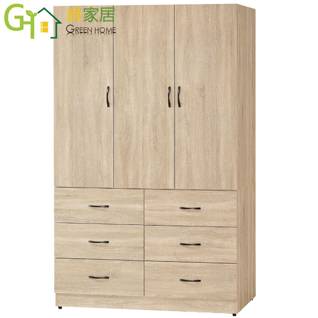 【 綠家居 】 泰格 時尚4尺木紋開門衣櫃 ( 三色可選+六抽屜+吊衣桿 )