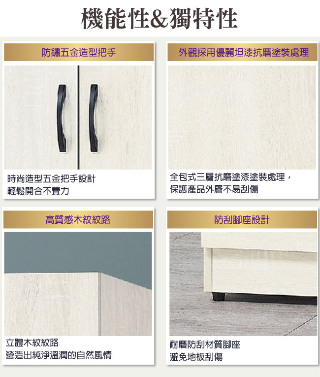 防蛀木心板+鋼珠滑軌結構等材質,結構牢固耐用,也不用擔心蟲蛀的煩惱,使用放心