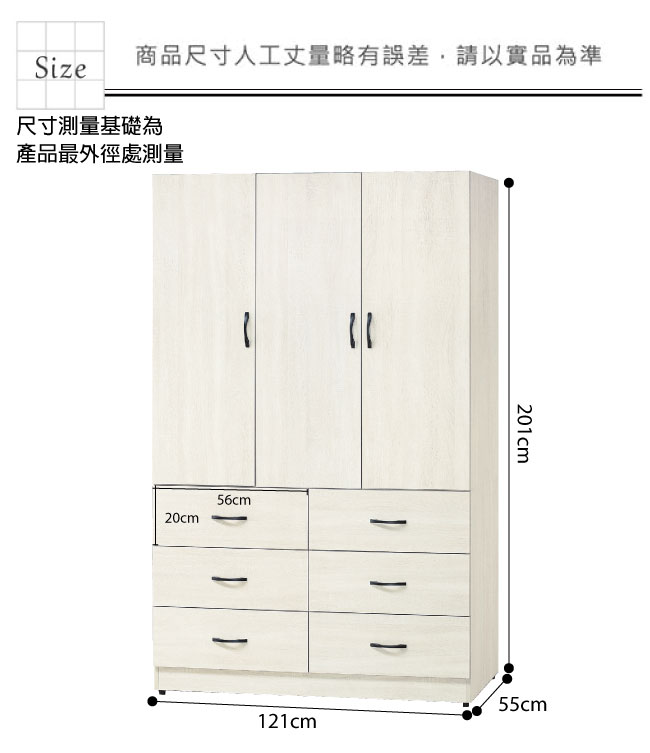 ◆產品名稱:【綠家居】泰格 時尚4尺木紋開門衣櫃(三色可選+六抽屜+吊衣桿)