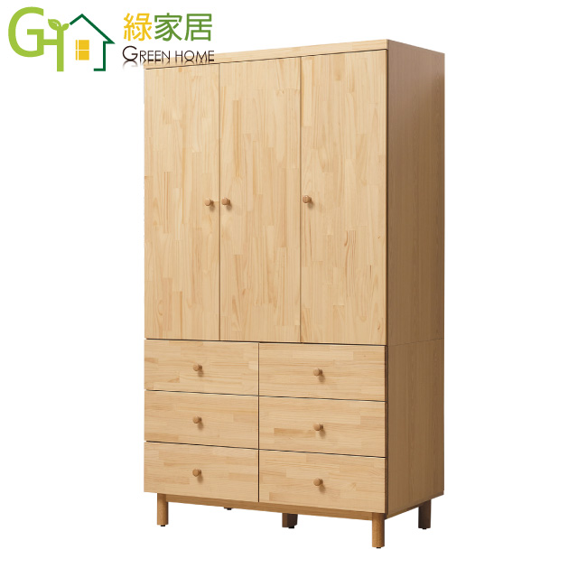 【綠家居】謝米德 時尚4尺實木開門衣櫃/收納櫃(吊衣桿+六抽屜)