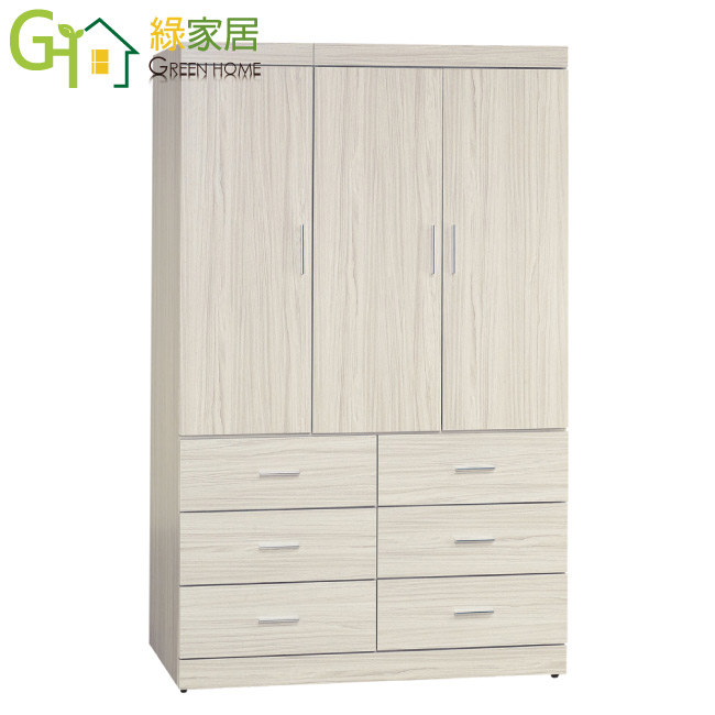 【綠家居】菲比克 多功能4.1尺三門六抽衣櫃/收納櫃(二色可選)