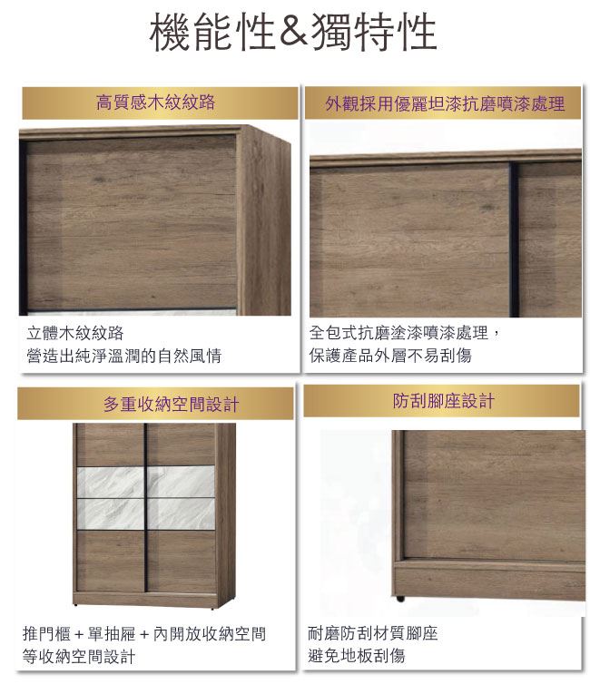 商品介紹 | 【綠家居】曼島 現代5尺推門衣櫃/收納櫃(附設側拉鏡面) 橡木紋色系+現代簡約風格+安心材質製造,整體採用防蛀木心板+防刮耐磨腳座+五金滑軌結構等安心材質製造,外層採用優利坦全包式耐磨噴漆處理搭配推門櫃+吊衣桿+單抽屜+附設側拉鏡面+內開放式收納等收納設計,全由專人配送到家,專業安心服務,替你省下更多時間! 【商品特色】 橡木紋色系+現代簡約風格+安心材質製造,使用放心+搭配居家更便利 採用防蛀木心板+防刮耐磨腳座+五金滑軌結構等安心材質製造 推門櫃+吊衣桿+單抽屜+附設側拉鏡面+內開放式收納等收納設計 此商品不需要DIY組立,此商品為組立後之成品 品質保證、專業設計、貼心服務 全由專人配送到家,專業安心服務,替您省下更多時間 |