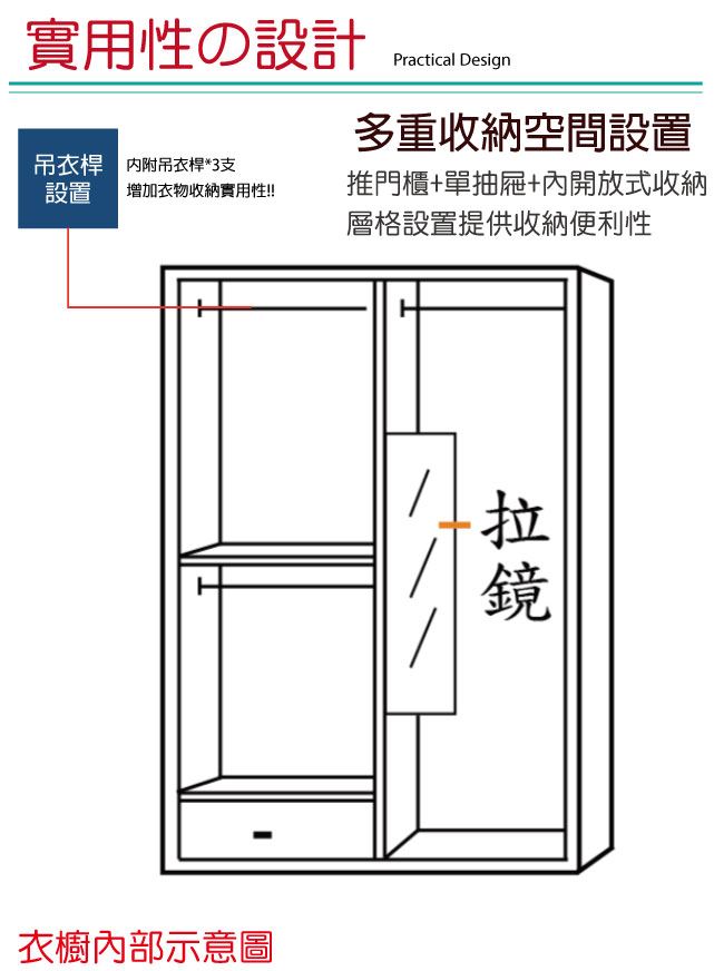 - 吊衣桿+單抽屜+附設側拉鏡面