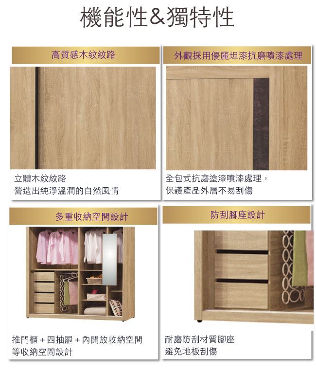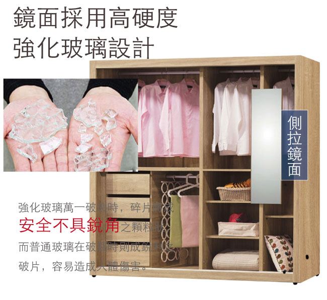 商品介紹 | 【綠家居】昂肯 現代5.9尺推門衣櫃/收納櫃(附設側拉鏡面) 橡木紋色系+現代簡約風格+安心材質製造,整體採用防蛀木心板+防刮耐磨腳座+五金滑軌結構等安心材質製造,外層採用優利坦全包式耐磨噴漆處理搭配推門櫃+吊衣桿+四抽屜+附設側拉鏡面+內開放式收納等收納設計,全由專人配送到家,專業安心服務,替你省下更多時間! 【商品特色】 橡木紋色系+現代簡約風格+安心材質製造,使用放心+搭配居家更便利 採用防蛀木心板+防刮耐磨腳座+五金滑軌結構等安心材質製造 推門櫃+吊衣桿+四抽屜+附設側拉鏡面+內開放式收納等收納設計 此商品不需要DIY組立,此商品為組立後之成品 品質保證、專業設計、貼心服務 全由專人配送到家,專業安心服務,替您省下更多時間 |