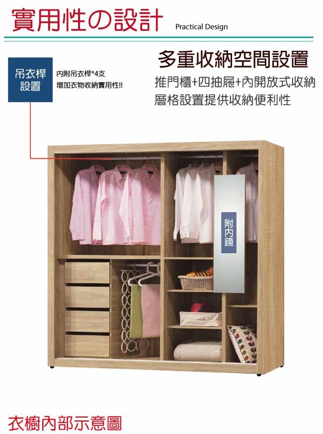 - 吊衣桿+四抽屜+附設側拉鏡面