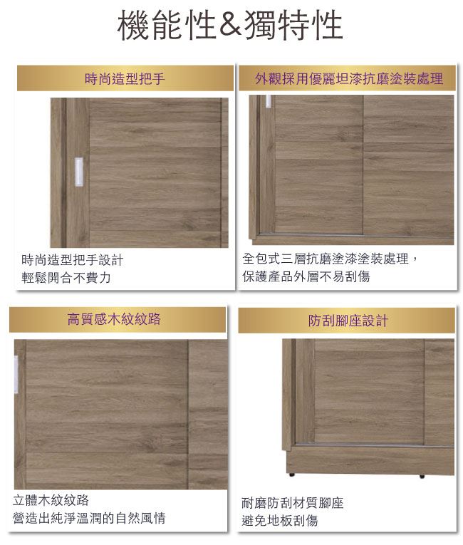 商品介紹 | 【綠家居】新德里 現代5.9尺推門衣櫃/收納櫃(穿衣鏡面+吊衣桿+單抽屜) 灰橡木紋色系+現代簡約風格+安心材質製造,整體採用防蛀木心板+五金滑軌結構+耐磨防刮腳座等安心材質製造,外層採用優利坦三層全包式耐磨塗漆塗裝處理搭配推門櫃+單抽屜+穿衣鏡面+吊衣桿+內開放式收納等收納設計,全由專人配送到家,專業安心服務,替你省下更多時間! 【商品特色】 灰橡木紋色系+現代簡約風格+安心材質製造,使用放心+搭配居家更便利 採用防蛀木心板+五金滑軌結構+耐磨防刮腳座等安心材質製造 推門櫃+單抽屜+穿衣鏡面+吊衣桿+內開放式收納等收納設計 此商品不需要DIY組立,此商品為組立後之成品 品質保證、專業設計、貼心服務 全由專人配送到家,專業安心服務,替您省下更多時間 |