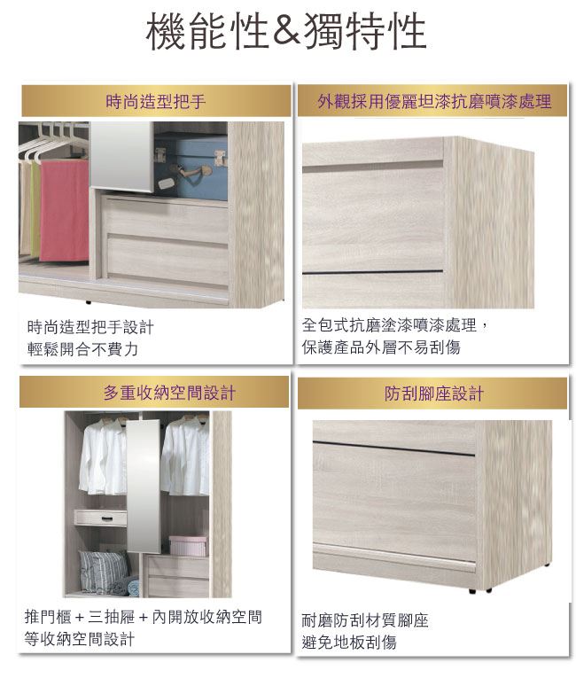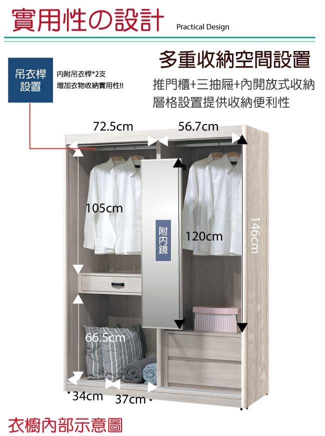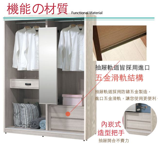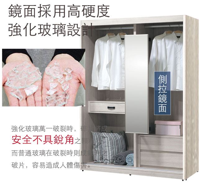 - 附穿衣鏡面+吊衣桿+三抽屜