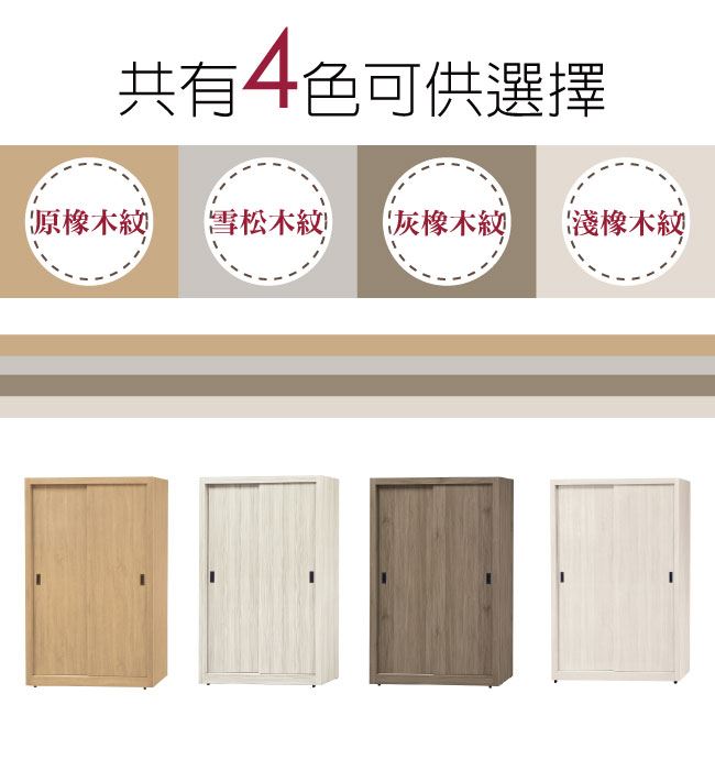 材質 | ◆產品名稱: 【綠家居】芬米 木紋5尺推門衣櫃/收納櫃/四色可選) 產品尺寸: 尺寸:(寬)151.4x(深)60.5x(高)198/公分 ◆材質: 材質:防蛀木心板+防潮耐磨腳座 材質:五金滑軌結構 塗漆:優利坦全包式耐磨噴漆處理