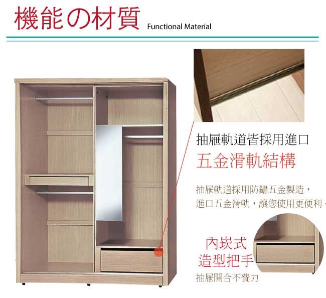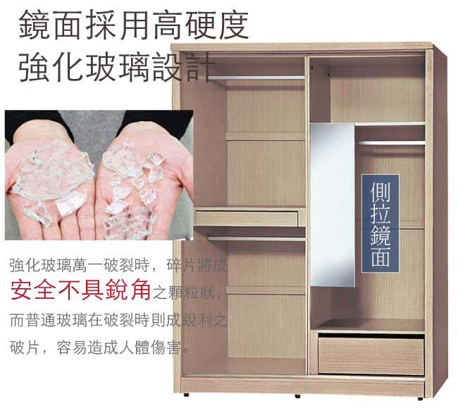 【綠家居】奧米 木紋5尺推門衣櫃/收納櫃(吊衣桿+二抽屜+側拉穿衣鏡面)