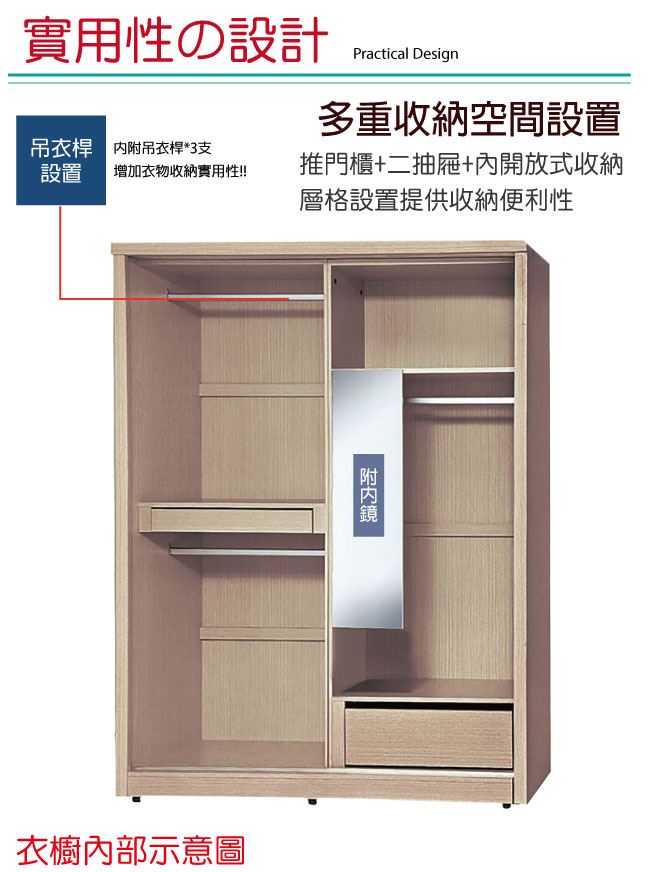 - 吊衣桿+二抽屜+側拉穿衣鏡面