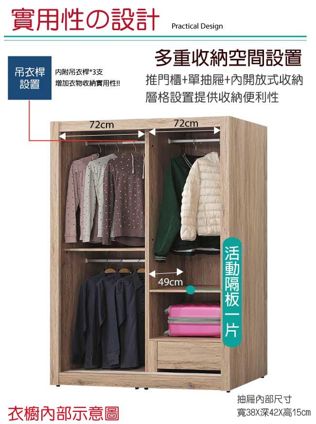 【綠家居】古特菲 淺橡5.1尺推門衣櫃
