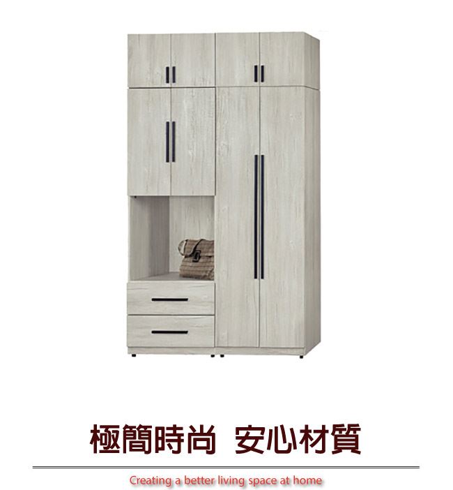 商 品 介 紹 | 【綠家居】夏艾亞淺橡5.1尺多功能加高衣櫃組合 淺橡木紋色系+現代簡約風格+安心材質製造,整體採用防蛀木心板+防刮耐磨腳座+五金滑軌結構等安心材質製造,產品外層採用防潮耐磨噴漆處理搭配採用二抽屜+吊衣桿+開門櫃+開放&隱藏式收納等收納空間設計,全由專人配送到家,專業安心服務,替你省下更多時間! 【商品特色】 淺橡木紋色系+現代簡約風格+安心材質製造,使用放心+搭配居家更便利 採用防蛀木心板+防刮耐磨腳座+五金滑軌結構等安心材質製造 產品外層採用防潮耐磨噴漆處理 搭配採用二抽屜+吊衣桿+開門櫃+開放&隱藏式收納等收納空間設計 此商品不需要DIY組立,此商品為組立後之成品 品質保證、專業設計、貼心服務 全由專人配送到家,專業安心服務,替您省下更多時間 |