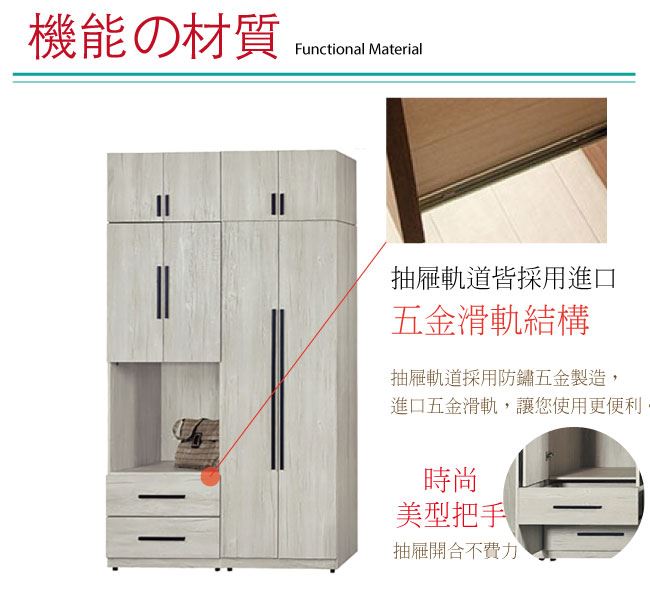- ◆產品名稱:【綠家居】夏艾亞淺橡5.1尺多功能加高衣櫃組合
