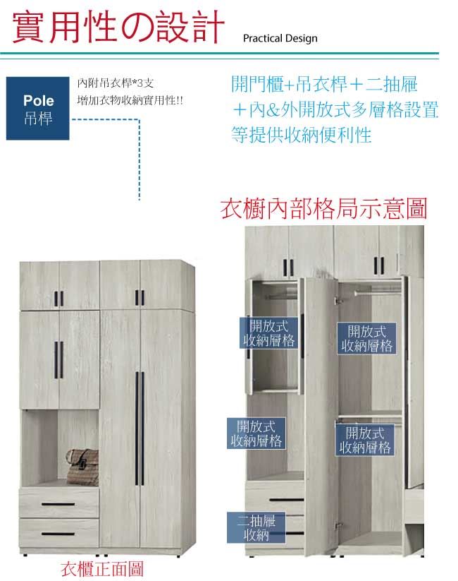 【綠家居】夏艾亞淺橡5.1尺多功能加高衣櫃組合