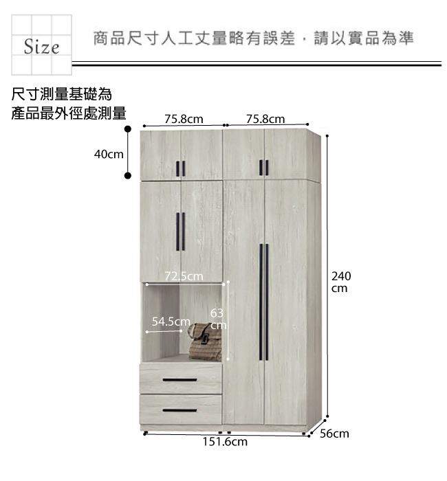 - 尺寸:(寬)151.6x(深)56(高)240/公分