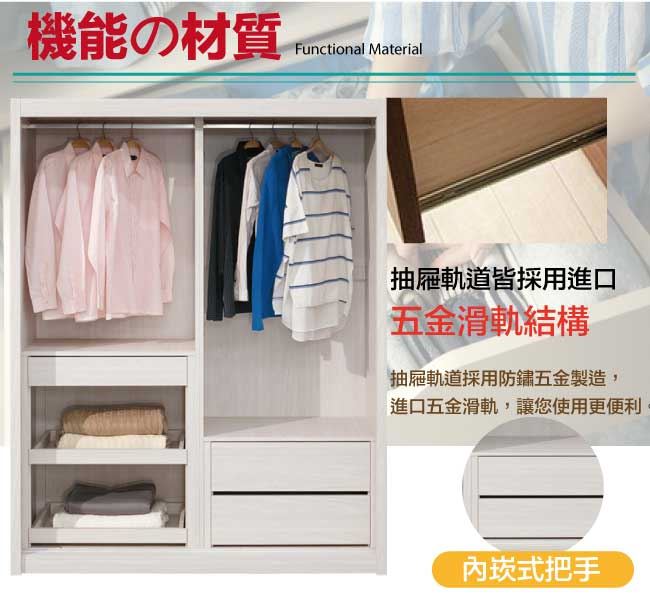 材質 | ◆產品名稱:【綠家居】利伯維淺橡5尺推門衣櫃 尺寸:(寬)150.5x(深)61(高)197/公分 ◆材質: 材質:防蛀木心板+防潮耐磨腳座+五金滑軌結構 噴漆:防潮耐磨噴漆處理