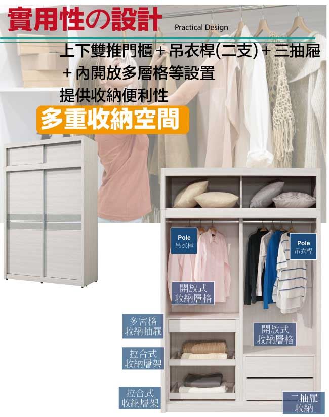 【綠家居】利伯維淺橡5尺加高推門衣櫃