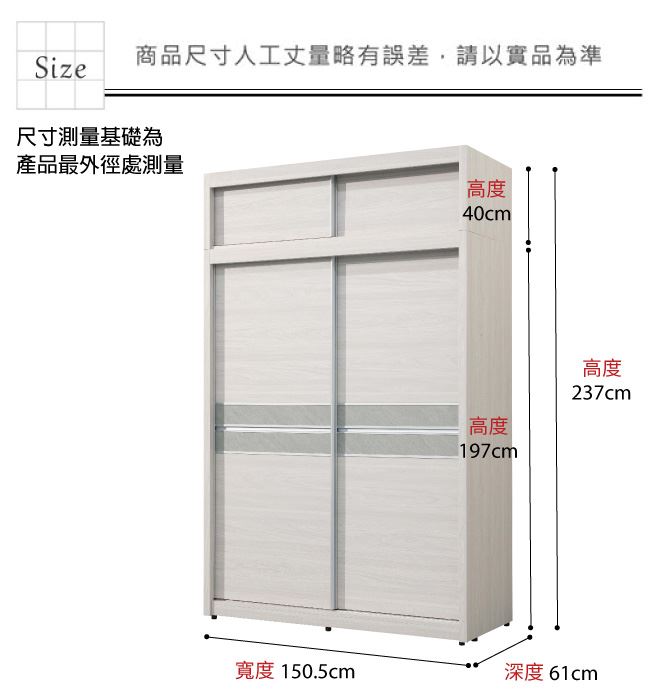 材質 | ◆產品名稱:【綠家居】利伯維淺橡5尺加高推門衣櫃 尺寸:(寬)150.5x(深)61(高)237/公分 ◆材質: 材質:防蛀木心板+防潮耐磨腳座+五金滑軌結構 噴漆:防潮耐磨噴漆處理