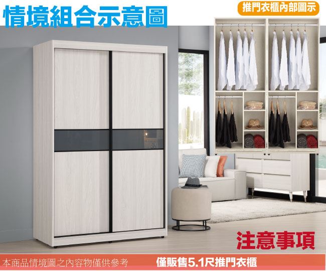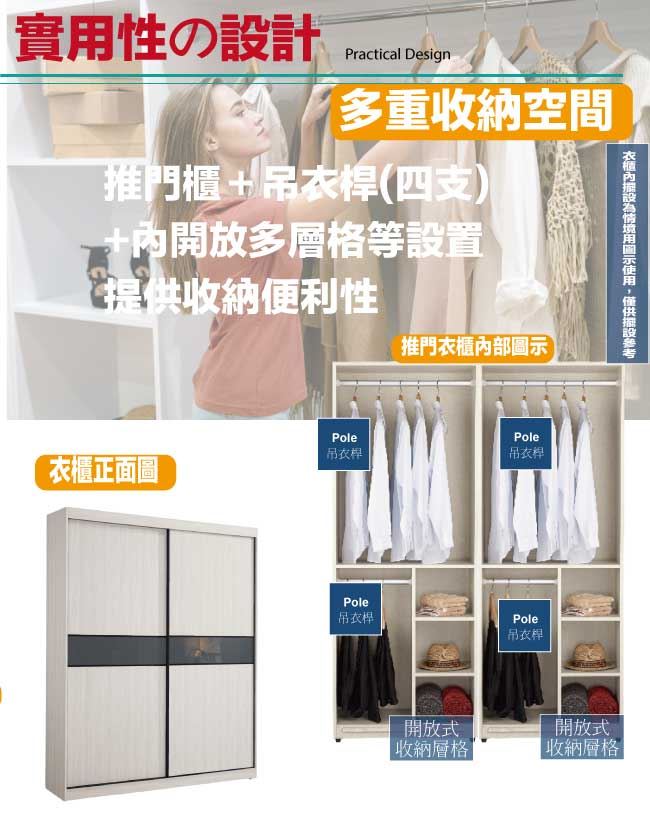 【綠家居】摩克5.1尺四吊衣桿推門衣櫃/收納櫃