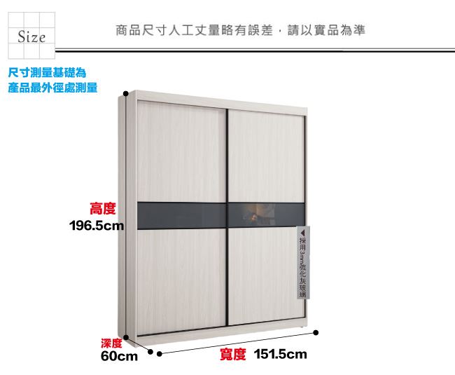 材質 | ◆產品名稱:【綠家居】摩克5.1尺四吊衣桿推門衣櫃/收納櫃 尺寸:(寬)151.5(深)60(高)196.5公分 ◆材質: 材質:防蛀木心板+防潮耐磨腳座+5mm強化灰漆強化灰漆玻璃門片飾板 噴漆:防潮耐磨噴漆處理