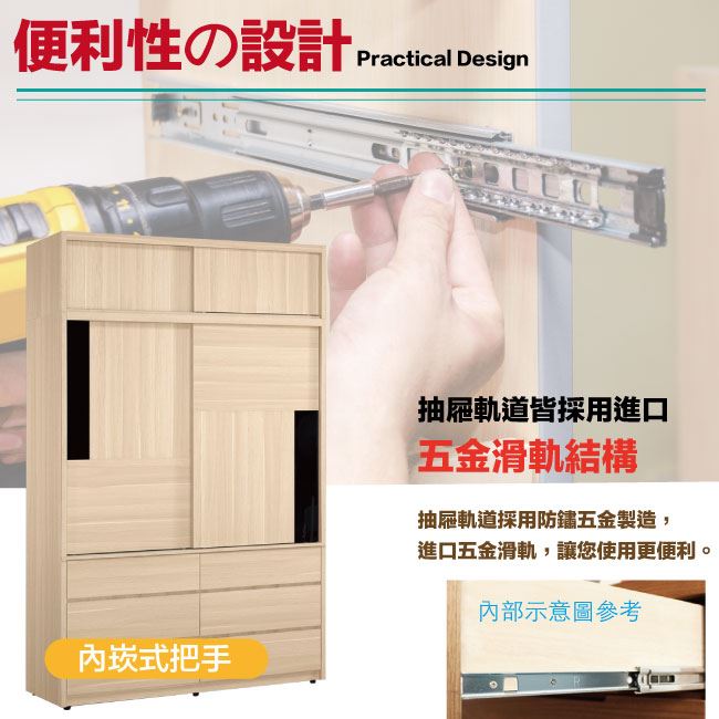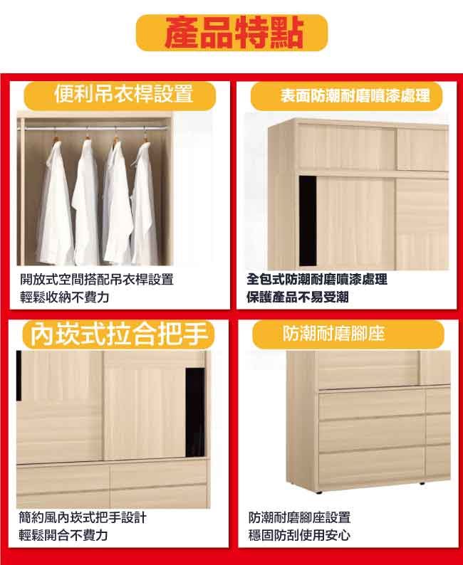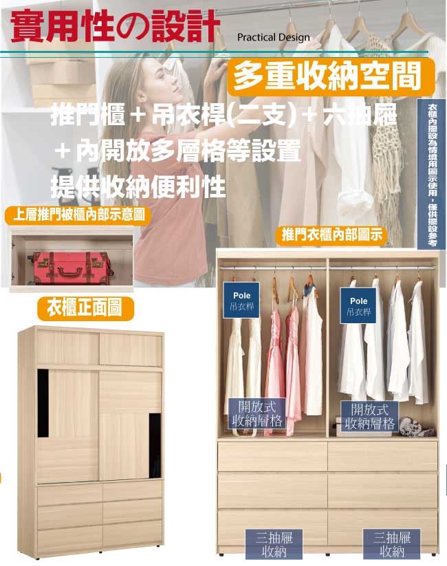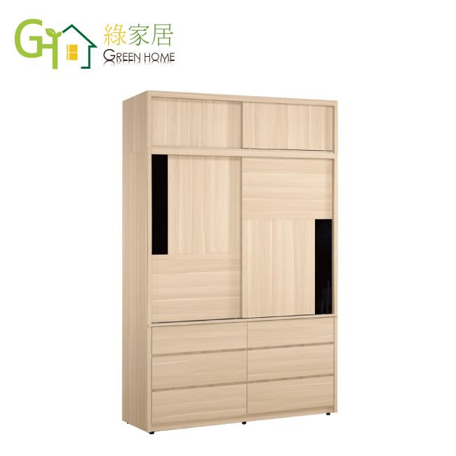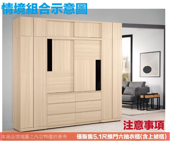 【綠家居】波卡帝5.1尺六抽推門加高衣櫃/收納櫃組合