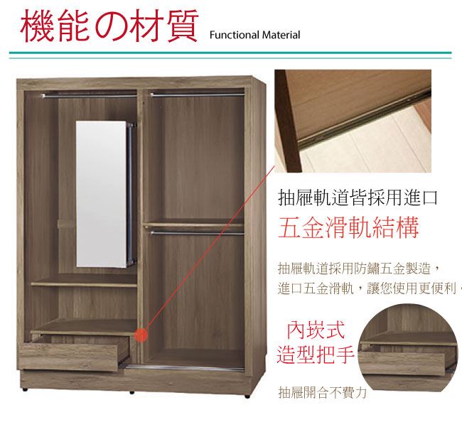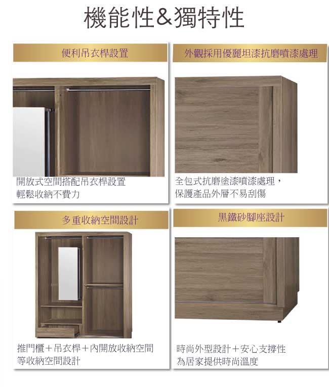 商 品 介 紹 | 【綠家居】卡雅5.9尺推門衣櫃(內含側拉鏡面) 灰橡木紋色系+現代簡約風格+安心材質製造,整體採用防蛀木心板+防刮耐磨腳座+五金滑軌結構+強化玻璃鏡面等安心材質製造,產品外層採用防潮耐磨噴漆處理搭配採用推門櫃+吊衣桿+單抽屜+內開放式收納等收納空間設計,全由專人配送到家,專業安心服務,替你省下更多時間! 【商品特色】 灰橡木紋色系+現代簡約風格+安心材質製造,使用放心+搭配居家更便利 採用防蛀木心板+防刮耐磨腳座+五金滑軌結構+強化玻璃鏡面等安心材質製造 產品外層採用防潮耐磨噴漆處理 搭配採用推門櫃+吊衣桿+單抽屜+內開放式收納等收納空間設計 此商品不需要DIY組立,此商品為組立後之成品 品質保證、專業設計、貼心服務 全由專人配送到家,專業安心服務,替您省下更多時間 |