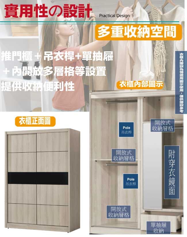 【綠家居】哈爾莉5尺推門衣櫃(內含穿衣鏡面)