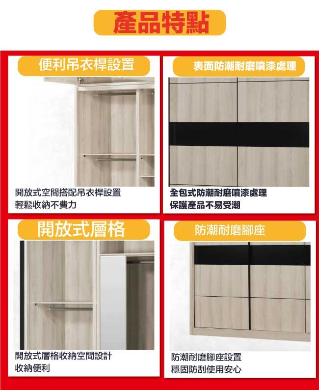 商 品 介 紹 | 【綠家居】哈爾莉5尺推門衣櫃(內含穿衣鏡面) 橡木紋色系+現代簡約風格+安心材質製造,整體採用防蛀木心板+防潮耐磨腳座+五金滑軌結構+強化玻璃鏡面等安心材質製造,產品外層採用防潮耐磨噴漆處理搭配採用推門櫃+單抽屜+穿衣鏡面設置+內開放式層格等收納空間設計,全由專人配送到家,專業安心服務,替你省下更多時間! 【商品特色】 橡木紋色系+現代簡約風格+安心材質製造,使用放心+搭配居家更便利 採用防蛀木心板+防潮耐磨腳座+五金滑軌結構+強化玻璃鏡面等安心材質製造 產品外層採用防潮耐磨噴漆處理 採用推門櫃+單抽屜+穿衣鏡面設置+內開放式層格等收納空間設計 此商品不需要DIY組立,此商品為組立後之成品 品質保證、專業設計、貼心服務 全由專人配送到家,專業安心服務,替您省下更多時間 |