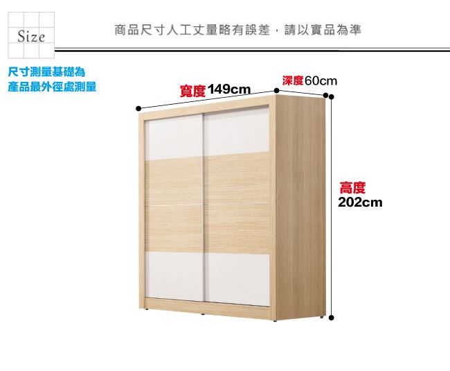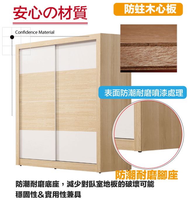 材質 | ◆產品名稱:【綠家居】布肯5尺推門衣櫃 尺寸:(寬)149x(深)60(高)202公分 ◆材質: 材質:防蛀木心板+防潮耐磨腳座+五金滑軌結構 噴漆:防潮耐磨噴漆處理